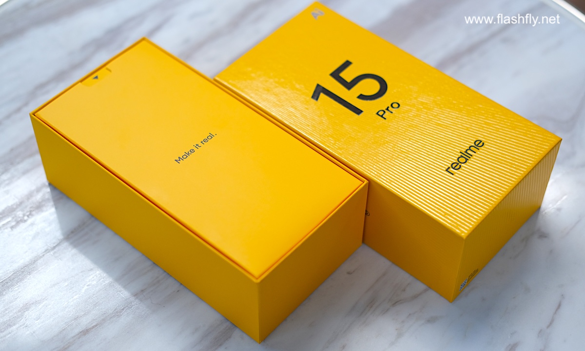 realme 15 Series 5G ทั้ง 2 รุ่น จัดส่งมาในกล่องสีเหลืองตามสไตล์ของ realme หน้ากล่องพิมพ์ตัวเลข 15 ขนาดใหญ่ สำหรับ realme 15 5G โดยมีสัญลักษณ์ 5G กำกับไว้ที่มุมบน ขณะที่หน้ากล่องของ realme 15 Pro 5G จะพิมพ์เลข 15 มีคำว่า Pro อยู่ข้างล่าง และวางสัญลักษณ์ AI ไว้ที่มุมบน บ่งบอกถึงความสามารถด้าน AI ที่ได้รับการพัฒนามาอย่างต่อเนื่องตั้งแต่รุ่นก่อน