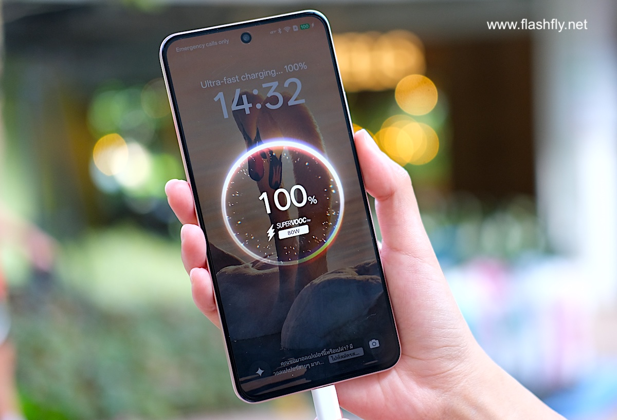 realme 15 Pro 5G ยังรองรับเทคโนโลยีชาร์จเร็ว 80W Ultra Charge ชาร์จจาก 0 ถึง 50% ในเวลาเพียง 25 นาที หรือ ชาร์จจนเต็ม 100% ในเวลา 61 นาที และถ้าหากใช้เวลาชาร์จเพียง 5 นาที ก็เพียงพอสำหรับเล่นเกมนาน 1.15 ชั่วโมง หรือ ดูวิดีโอ YouTube ได้นานสูงสุด 3.3 ชั่วโมง แถมสายชาร์จ และหัวชาร์จ 80W Power Adapter มาให้แล้ว
