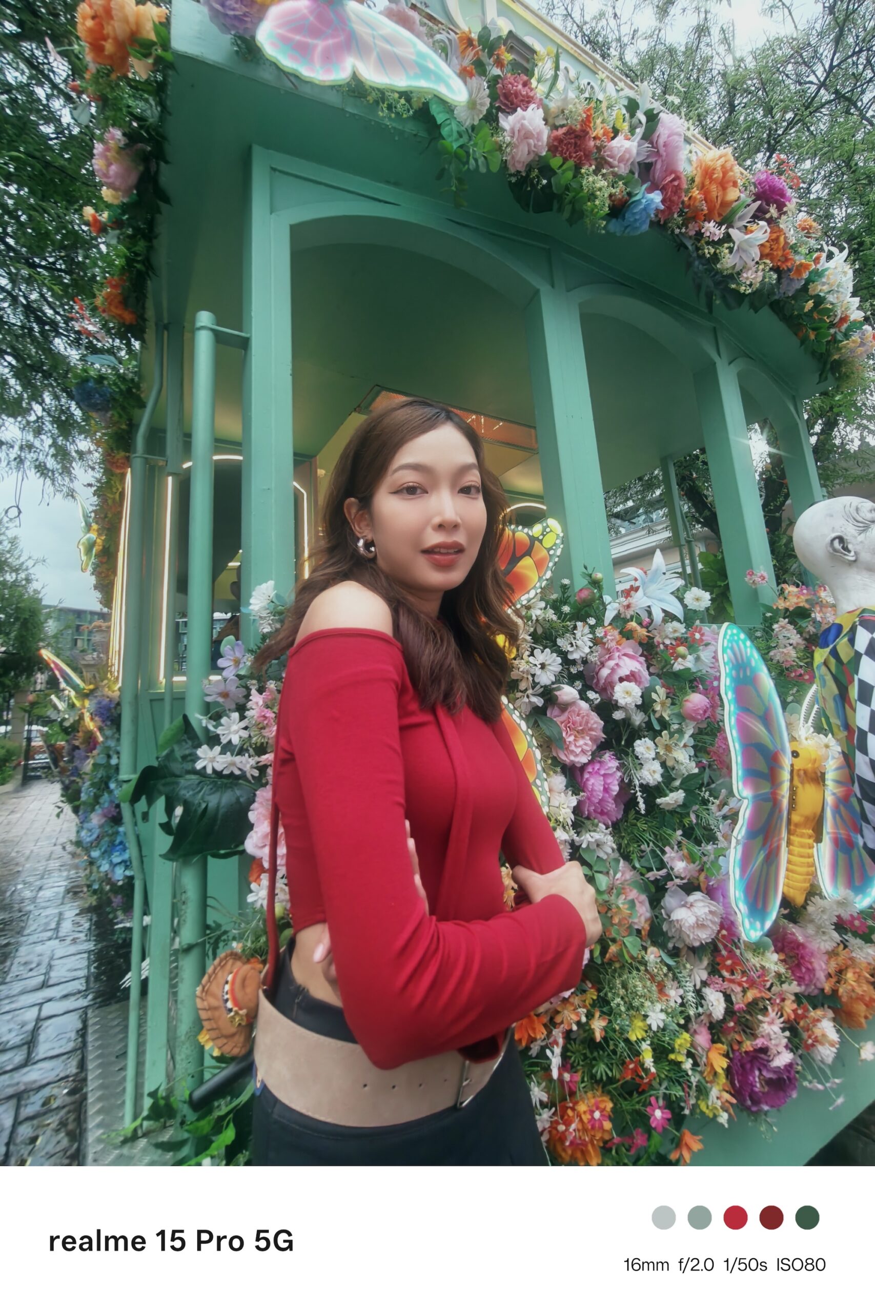 ด้านการถ่ายภาพ realme 15 5G มีจุดเด่นที่กล้องตัวหลัก ความละเอียด 50 ล้านพิกเซล ใช้เซ็นเซอร์ Sony IMX882 ขนาด 1/1.95 นิ้ว ระยะโฟกัสเทียบเท่า 26 มม. รูรับแสง f/1.8 และมีระบบป้องกันภาพสั่นไหวแบบ OIS (Optical Image Stabilization) เหมาะสำหรับการถ่ายภาพพอร์ตเทรตและวิวทิวทัศน์ในที่แสงน้อยหรือเวลากลางคืน ช่วยเพิ่มความคมชัด ความสว่าง และให้สีสันที่แม่นยำเป็นธรรมชาติ วางคู่กับกล้อง Ultra Wide ความละเอียด 8 ล้านพิกเซล ระยะโฟกัสเทียบเท่า 16 มม. รูรับแสง f/2.2 ให้มุมมองภาพ 112 องศา