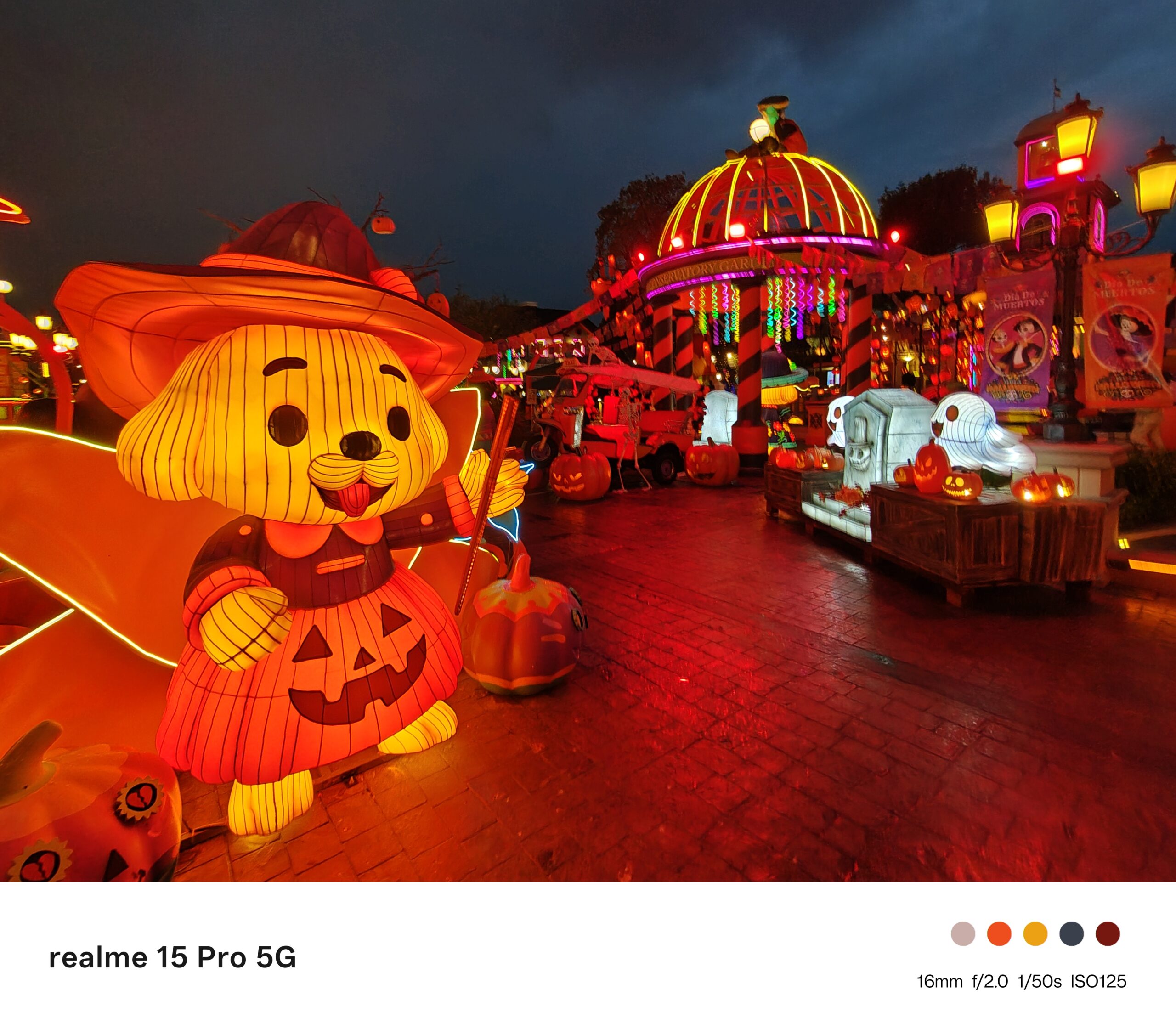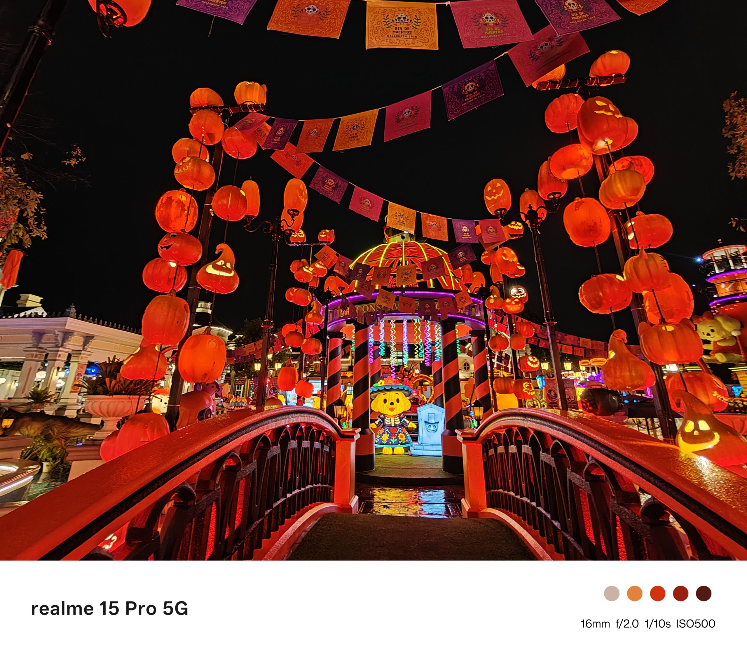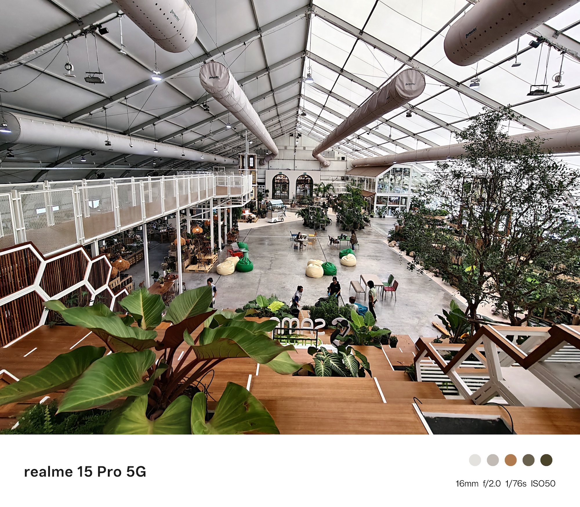 กล้องหลังของ realme 15 5G รองรับโหมดถ่ายภาพ Night, AI Landscape, Video, Photo, Portrait, Pro, Hi-Res, Panorama, Street, Movie, Slow-motion, Time-lapse, Long Exposure, Dual-view Video, Underwater, Text Scanner, Breeno Scan, Starry Mode และ Tilt-shift
