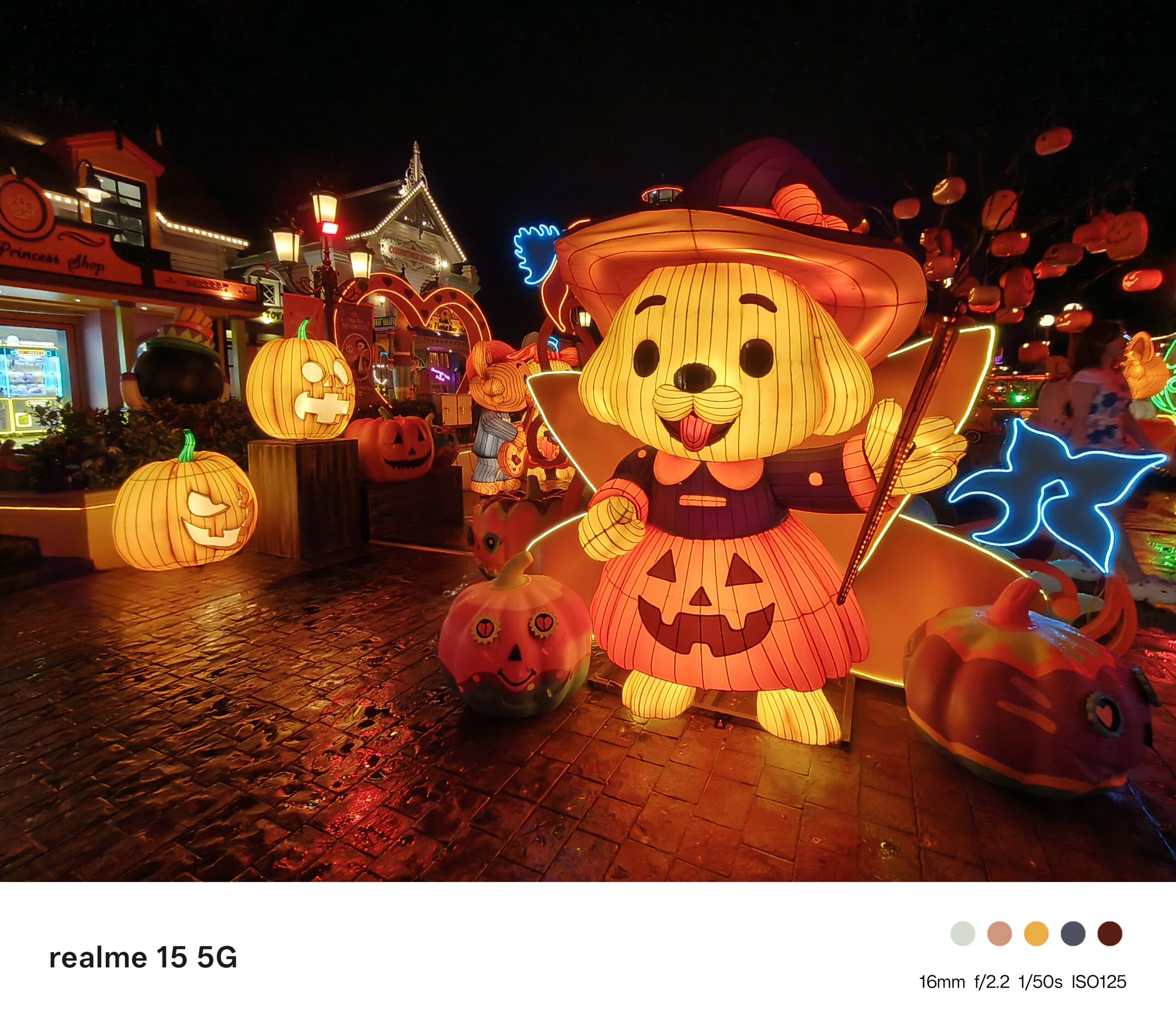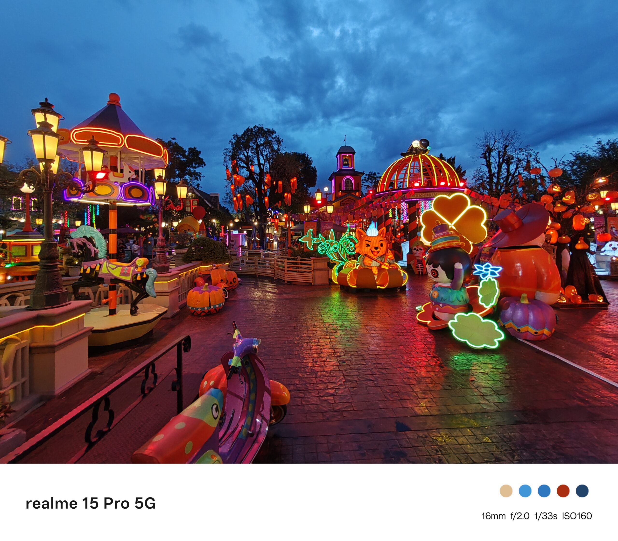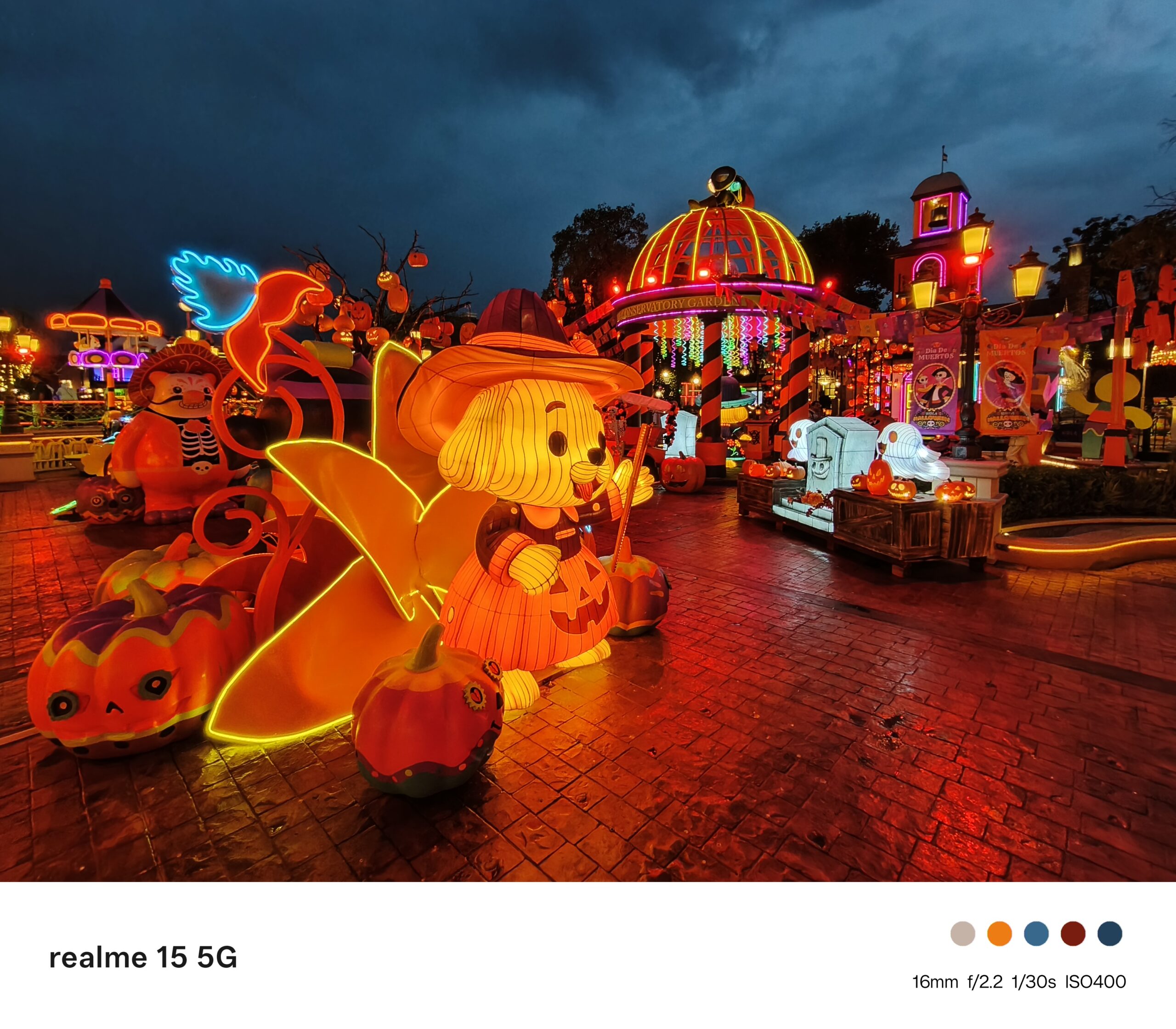 กล้องหลังของ realme 15 5G รองรับโหมดถ่ายภาพ Night, AI Landscape, Video, Photo, Portrait, Pro, Hi-Res, Panorama, Street, Movie, Slow-motion, Time-lapse, Long Exposure, Dual-view Video, Underwater, Text Scanner, Breeno Scan, Starry Mode และ Tilt-shift