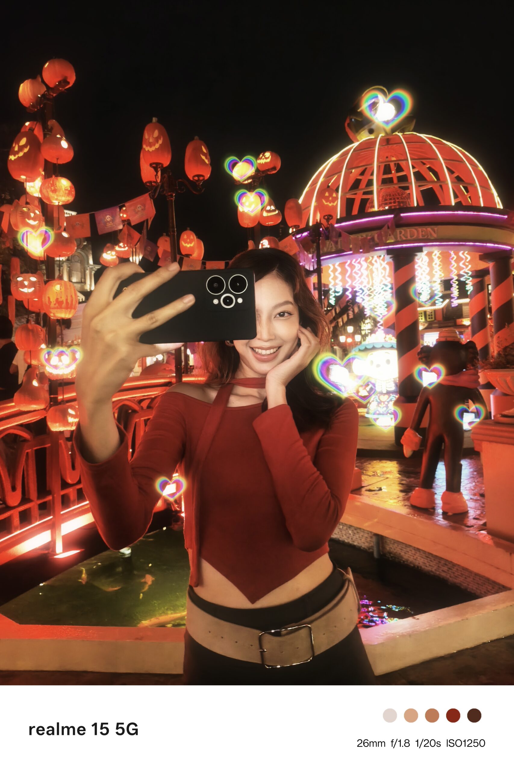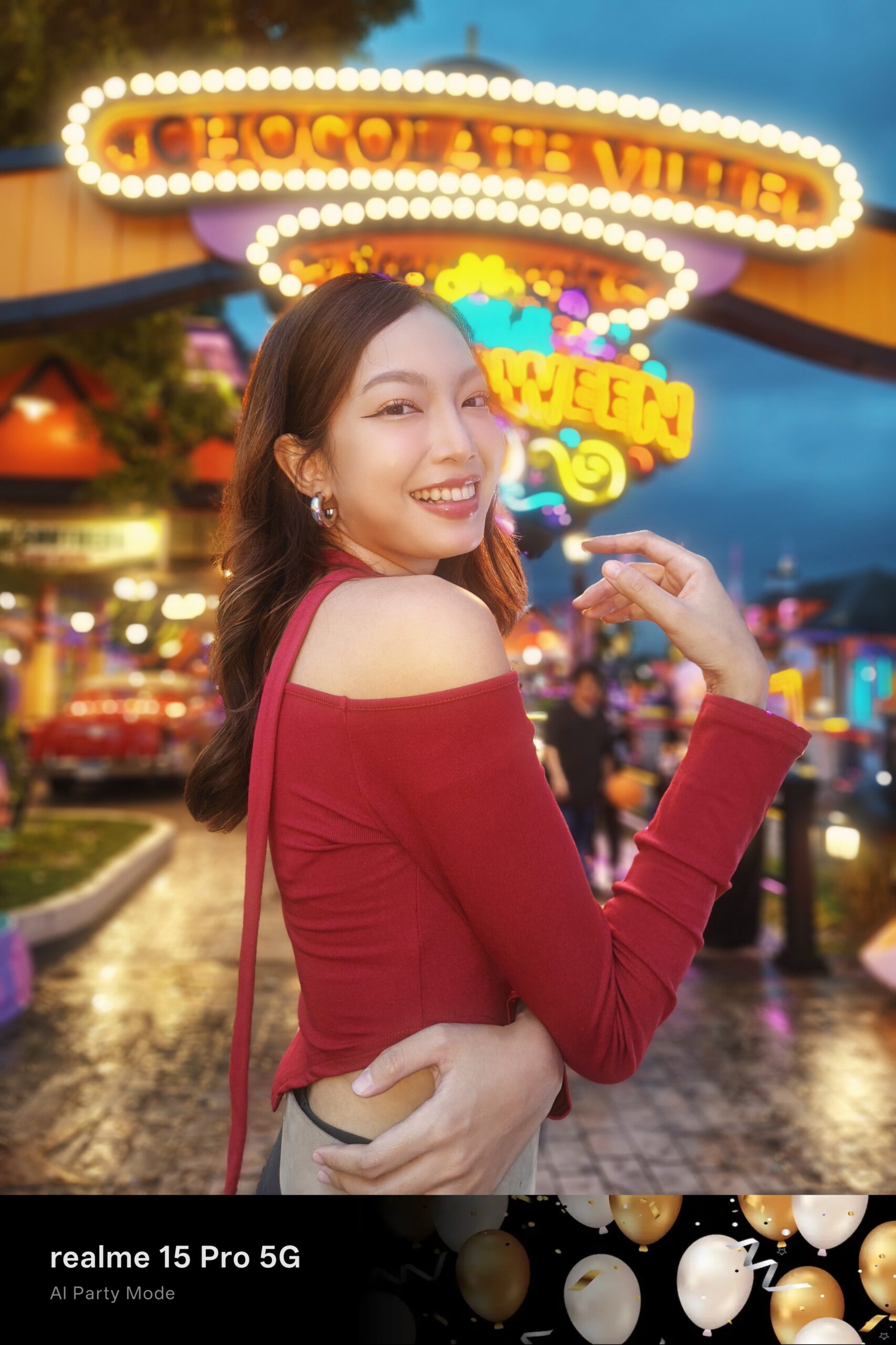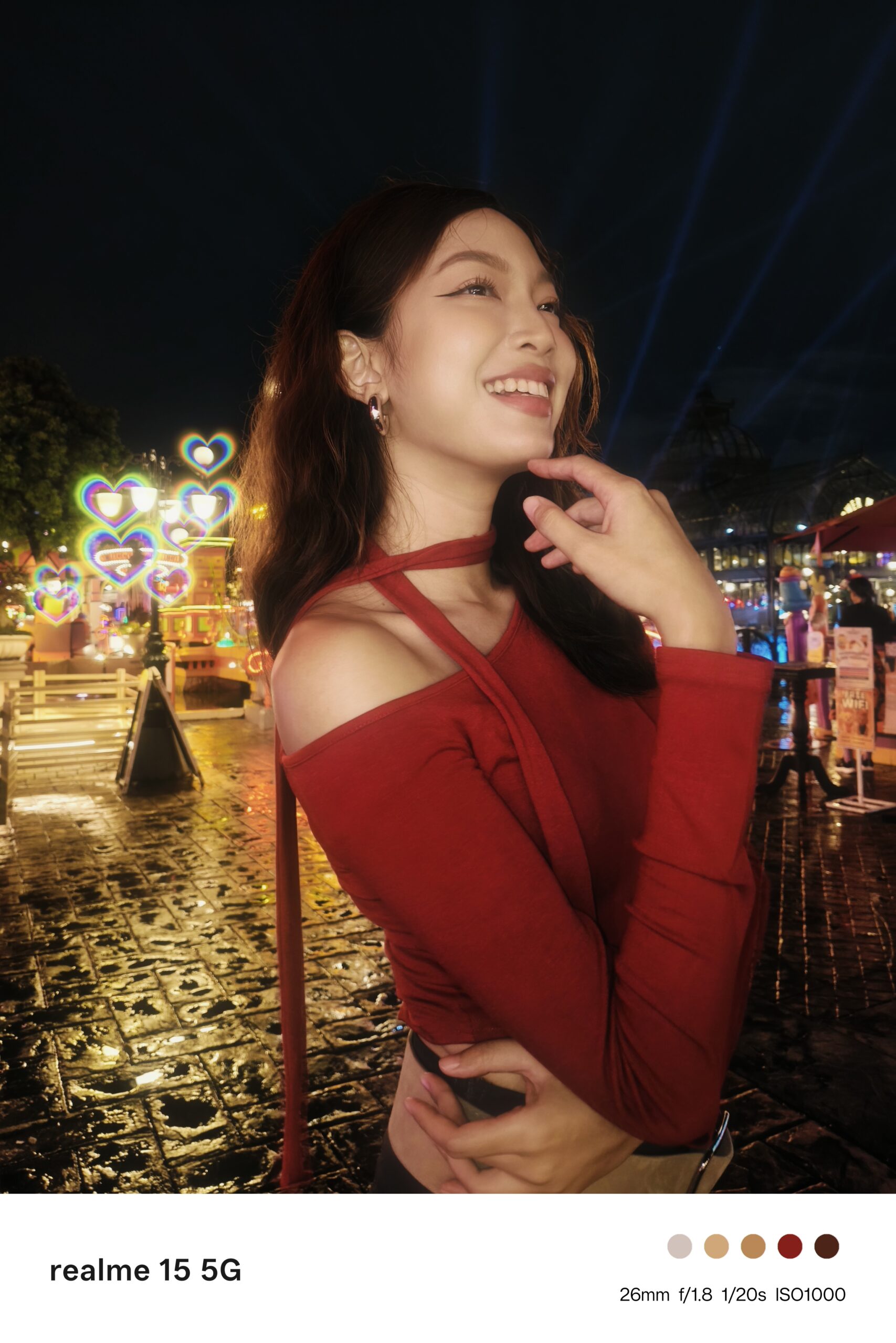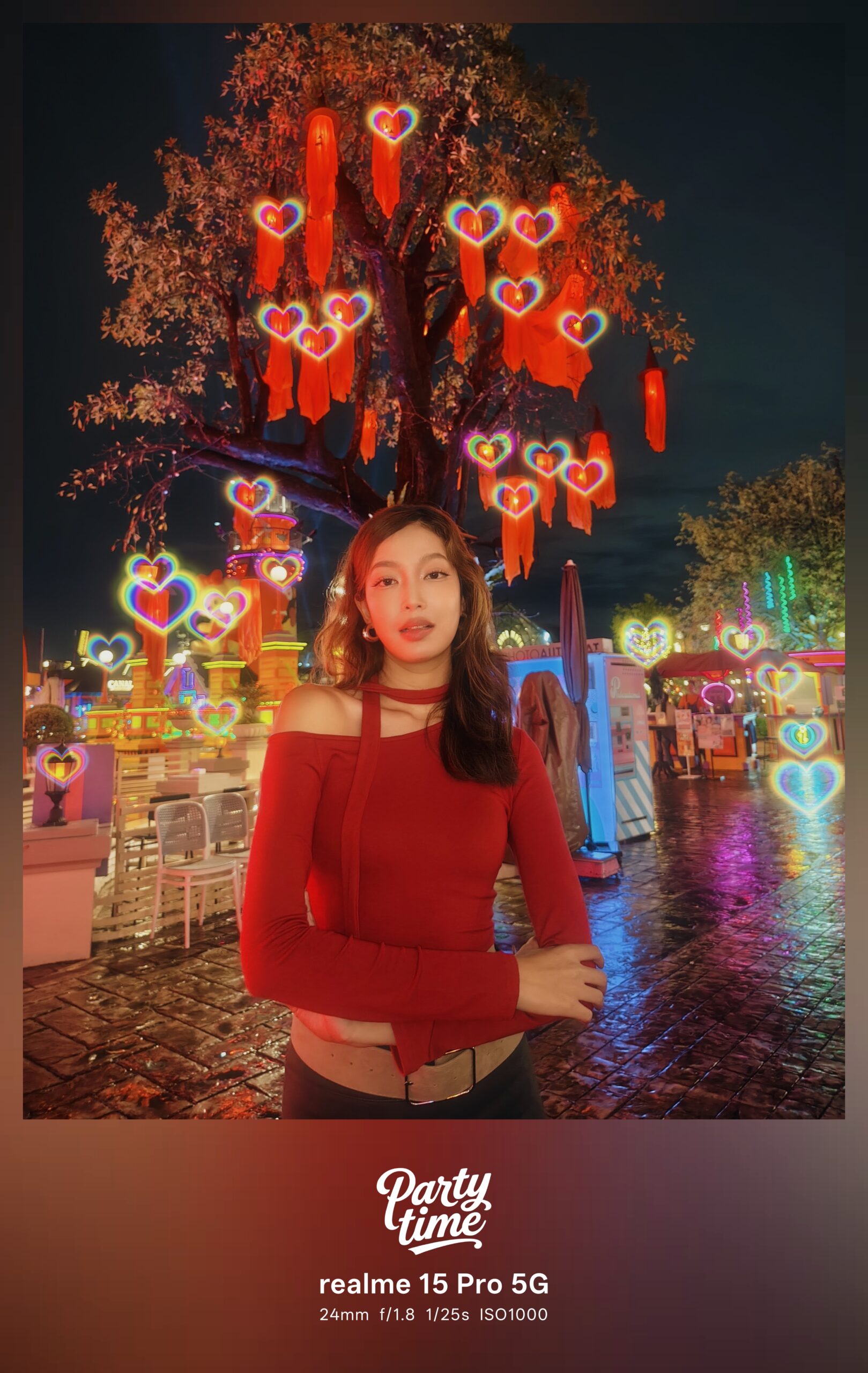 realme 15 Series 5G ได้รับการออกแบบมาเพื่อเอาใจคนรุ่นใหม่ โดยเฉพาะสายปาร์ตี้ ด้วยกล้องความละเอียดสูง 50 ล้านพิกเซล ทั้งกล้องหลักและกล้องเซลฟี่ เสริมด้วยเทคโนโลยี AI ที่ช่วยให้การถ่ายภาพยามค่ำคืนออกมาสว่างคมชัด พร้อม Light Effect เปลี่ยนแสงไฟเบื้องหลังให้เป็นเอฟเฟกต์แสงดาวหรือรูปหัวใจ ยิ่งทำให้ภาพถ่ายในเวลากลางคืนโดดเด่นมากยิ่งขึ้น และยังยกระดับการถ่ายวิดีโอให้คุณภาพดีขึ้นระดับ 4K ทั้งกล้องหลังและกล้องหน้า