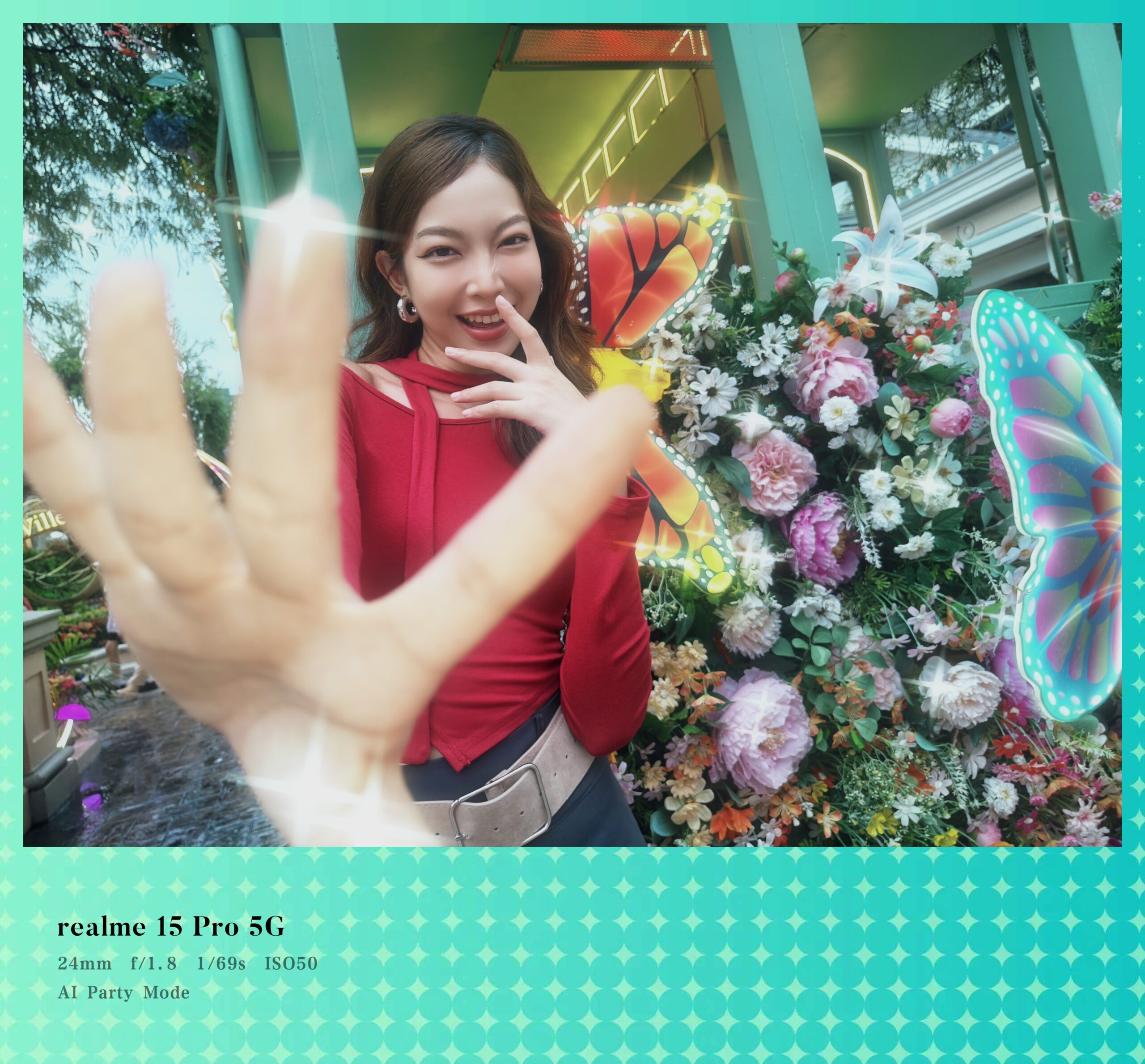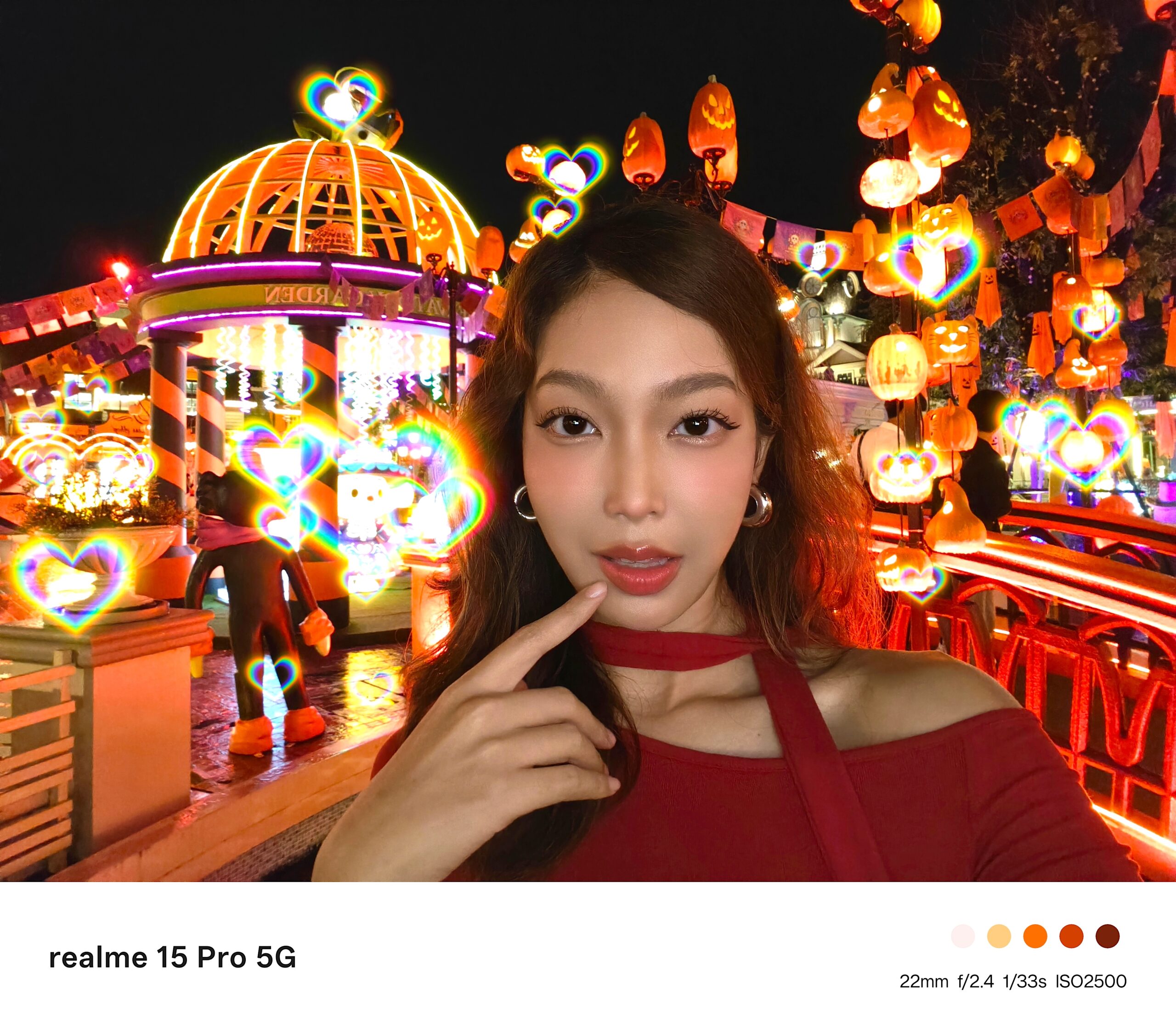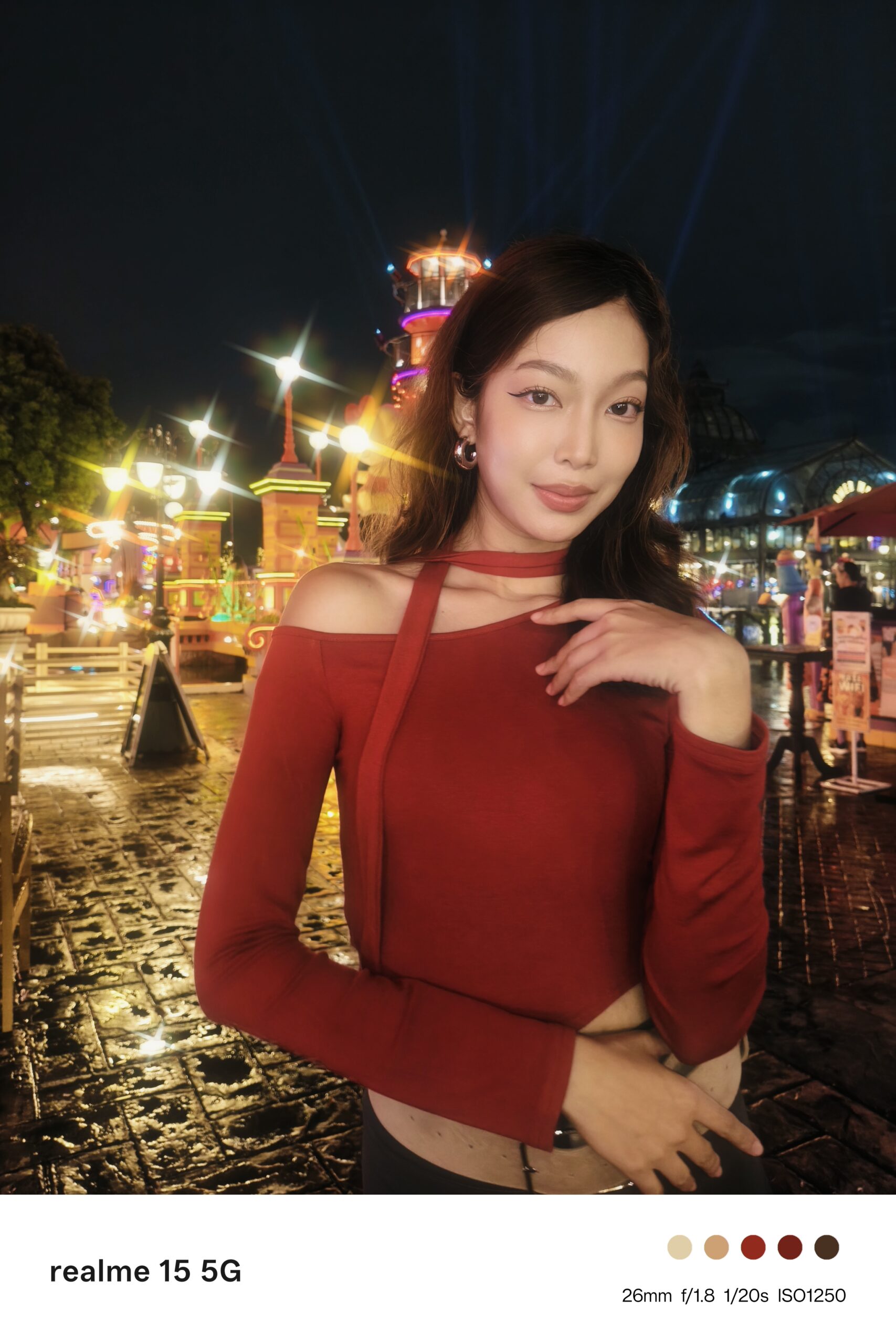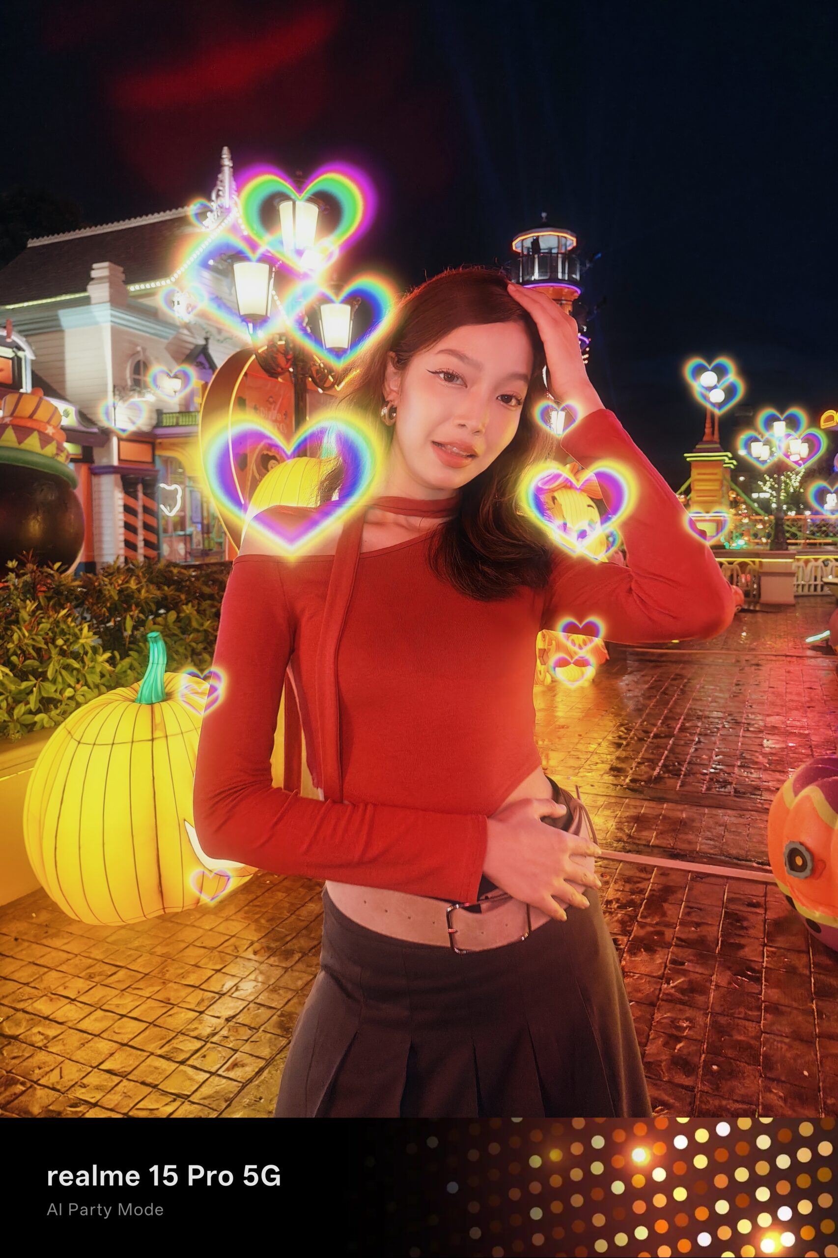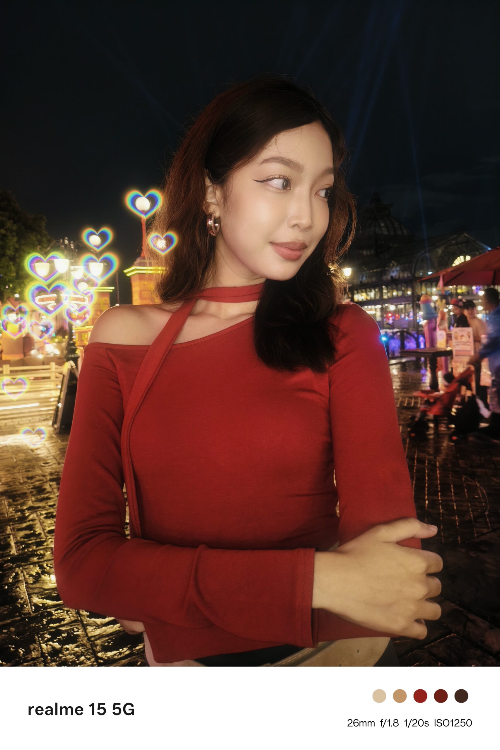 realme 15 Series 5G ได้รับการออกแบบมาเพื่อเอาใจคนรุ่นใหม่ โดยเฉพาะสายปาร์ตี้ ด้วยกล้องความละเอียดสูง 50 ล้านพิกเซล ทั้งกล้องหลักและกล้องเซลฟี่ เสริมด้วยเทคโนโลยี AI ที่ช่วยให้การถ่ายภาพยามค่ำคืนออกมาสว่างคมชัด พร้อม Light Effect เปลี่ยนแสงไฟเบื้องหลังให้เป็นเอฟเฟกต์แสงดาวหรือรูปหัวใจ ยิ่งทำให้ภาพถ่ายในเวลากลางคืนโดดเด่นมากยิ่งขึ้น และยังยกระดับการถ่ายวิดีโอให้คุณภาพดีขึ้นระดับ 4K ทั้งกล้องหลังและกล้องหน้า