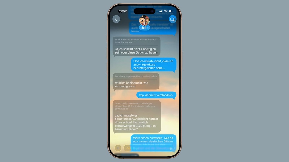 แอป Messages ยังได้รับฟีเจอร์ใหม่ Live Translation สามารถแปลภาษาในการแชทได้แบบเรียลไทม์ ช่วยให้ผู้ใช้งานสามารถสื่อสารกับชาวต่างชาติได้ง่ายมากขึ้น โดยช่วงแรกรองรับภาษาอังกฤษ (สหรัฐอเมริกา), อังกฤษ (สหราชอาณาจักร), จีน, ฝรั่งเศส, เยอรมัน, อิตาลี, ญี่ปุ่น, เกาหลี, โปรตุเกส (บราซิล) และ สเปน (สเปน)