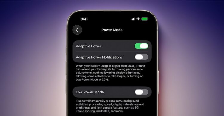 iOS 26 มาพร้อมโหมด Adaptive Power และจะถูกเปิดใช้งานเป็นค่าเริ่มต้น สำหรับ iPhone Air, iPhone 17, iPhone 17 Pro และ iPhone 17 Pro Max ขณะที่ iPhone รุ่นเก่ากว่า จะต้องเข้าไปเปิดใช้งานด้วยตัวเอง