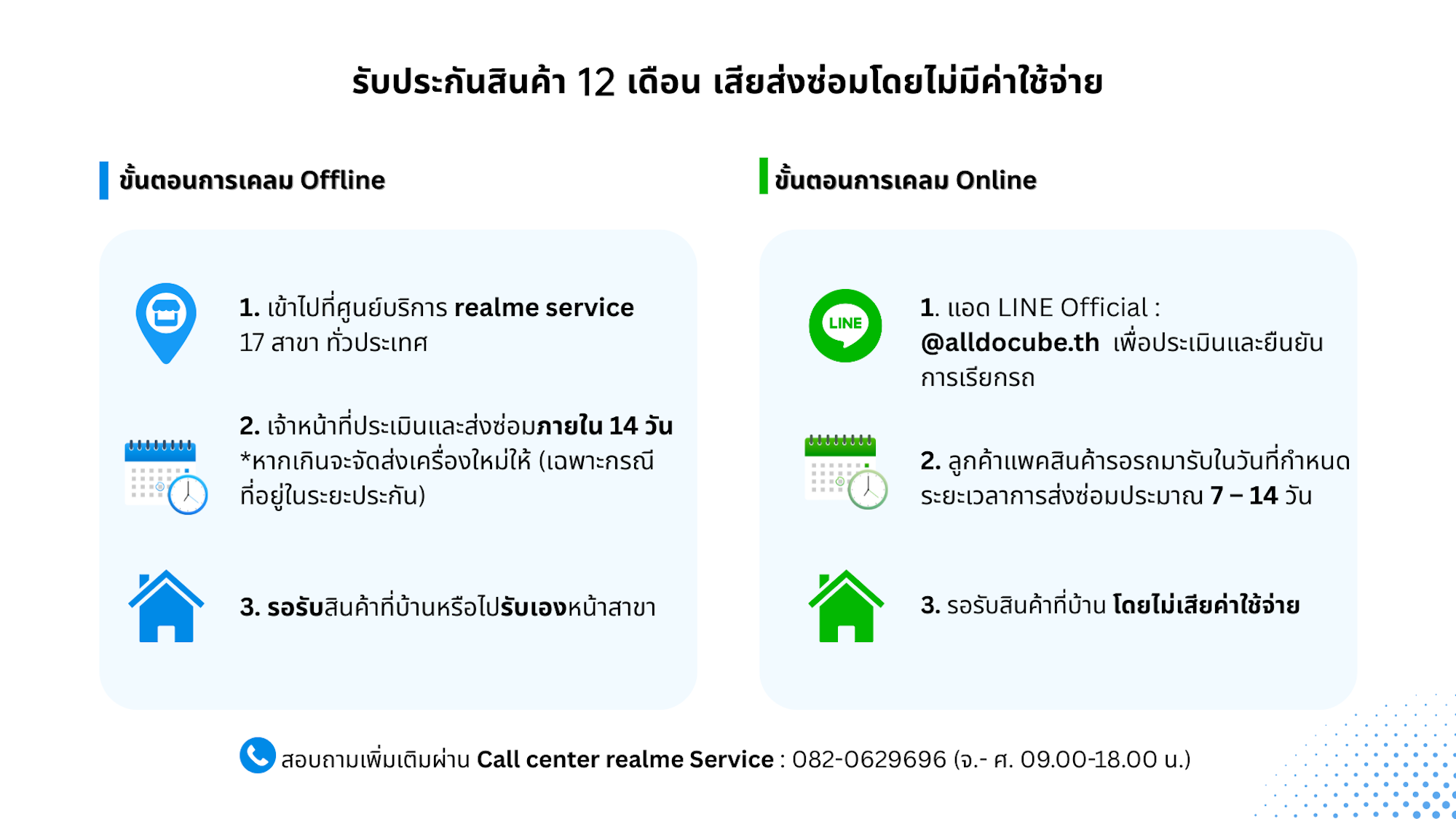 พร้อมการรับประกันนาน 12 เดือนทั้งออนไลน์หรือหน้าร้านที่ realme service ทั้ง 17 สาขา ทั่วประเทศ สามารถจับจองได้ที่ร้านค้าชั้นนำ True , BaNANA และร้านค้าชั้นนำทั่วประเทศใกล้บ้านคุณ รวมถึงแพลตฟอร์มออนไลน์ Shopee, Lazada และ TikTok Shop