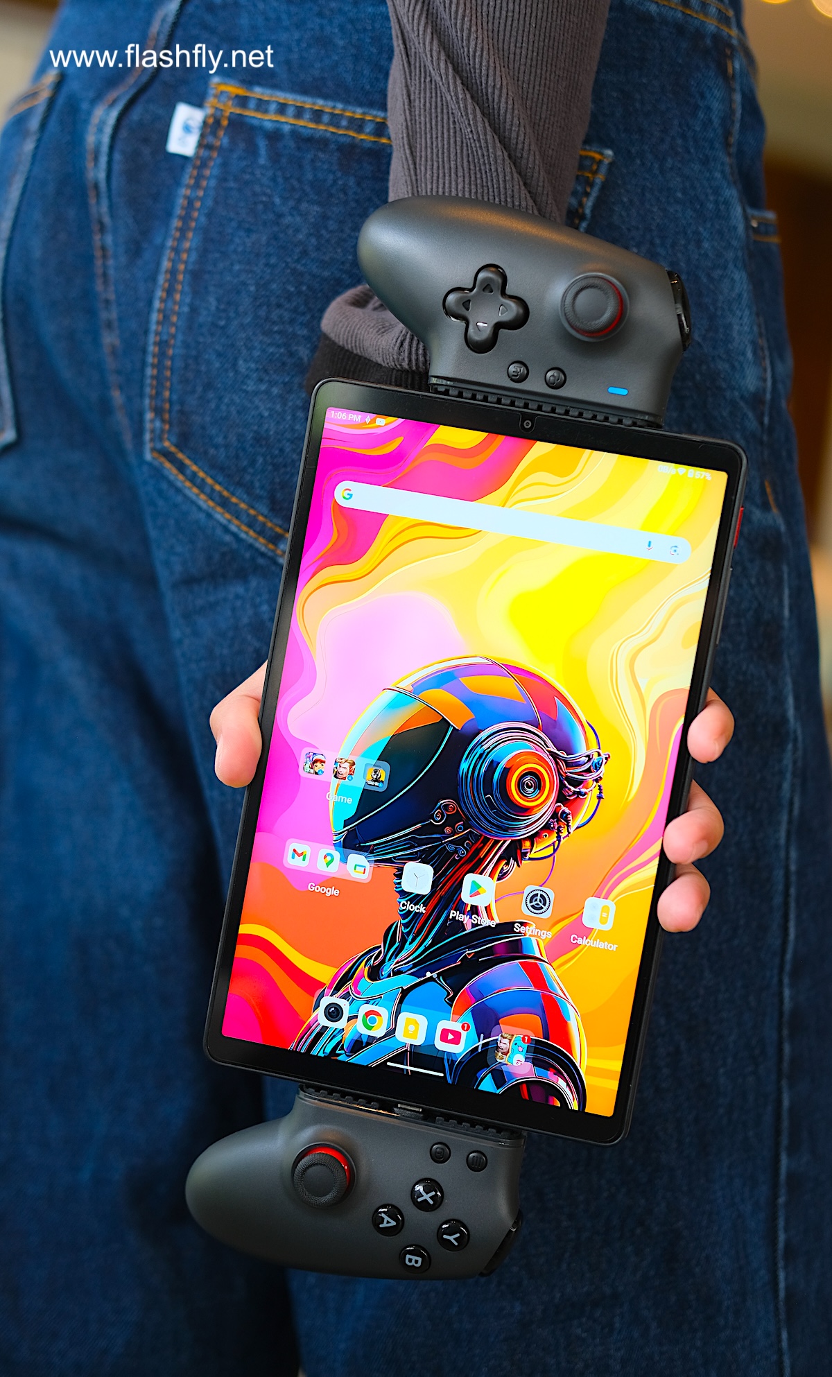 เนื่องจาก Alldocube iPlay 70 mini Ultra เป็นเกมมิ่งแท็บเล็ต Alldocube ก็แถมคอนโทรลเลอร์ Alldocube GamePad JoyStick มาให้ด้วย มาพร้อม Grip ที่ช่วยให้จับถือได้ถนัด ด้านหลังของ Grip ทำพื้นผิวให้ขรุขระ เพิ่มความกระชับมือ ส่วนแกนกลางสามารถยืดออกได้ และมีพอร์ต USB Type-C เพื่อเชื่อมต่อกับแท็บเล็ต เมื่อประกอบทั้งคู่เข้าด้วยกัน Alldocube iPlay 70 mini Ultra ก็กลายเป็นเครื่องเล่นเกมพกพาทันที