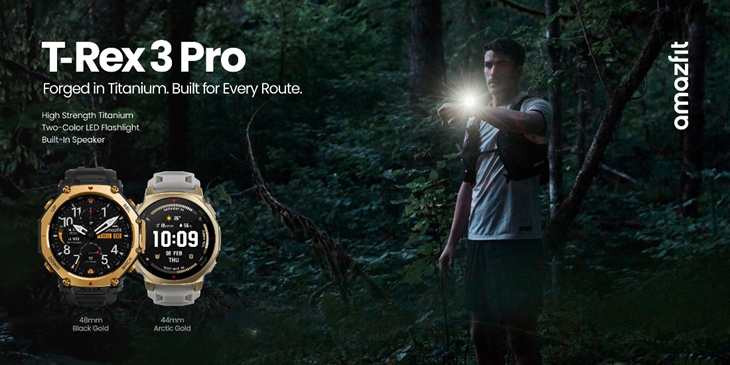 Amazfit (อเมซฟิต) T-Rex 3 Pro  สมาร์ทวอทช์รุ่นเรือธงใหม่ล่าสุดจาก Zepp Health (NYSE: ZEPP) ที่ออกแบบมาเพื่อนักวิ่งเทรล นักกีฬาสายอึด และนักผจญภัยกลางแจ้งอย่างแท้จริง มาพร้อมสเปกระดับท็อป หน้าจอ AMOLED กระจก Sapphire Glass กันรอยขีดข่วน, ตัวเรือนไทเทเนียมอัลลอยด์เกรด 5 สุดแกร่ง, ระบบแผนที่ออฟไลน์พร้อมการนำทางแบบละเอียด, แบตเตอรี่ใช้งานได้นานสูงสุด 25 วัน และฟีเจอร์สำหรับกีฬาและสุขภาพแบบครบวงจร เพื่อรองรับทุกกิจกรรม Outdoor ที่ท้าทาย
