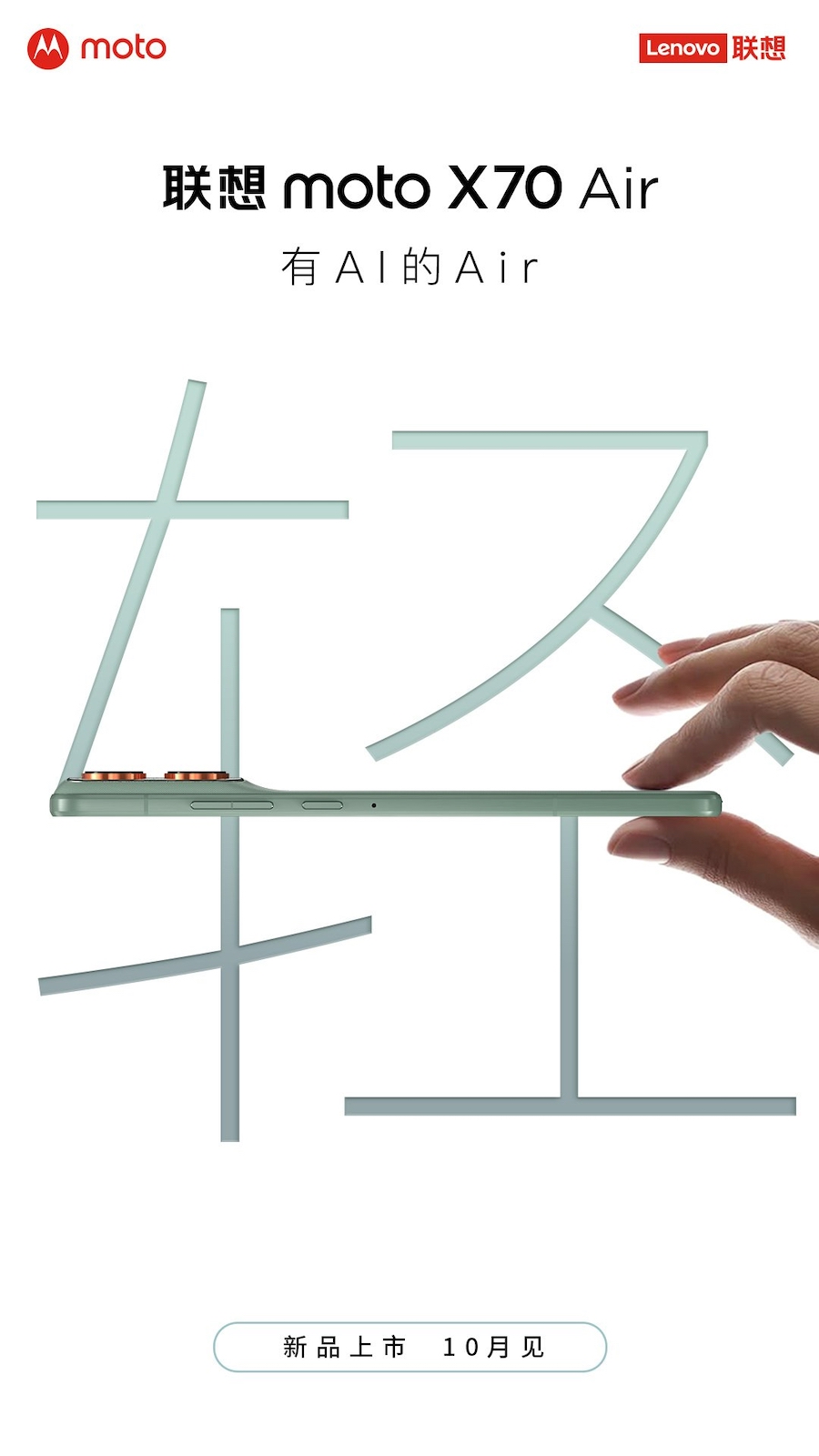 Moto X70 Air ยังไม่ถูกเปิดเผยสเปกออกมา แต่ยืนยันได้ว่านอกจากมีดีไซน์บางเบา ยังมาพร้อมประสบการณ์การใช้งานที่ขับเคลื่อนด้วย AI โดยมีกำหนดเปิดตัวในประเทศจีนช่วงปลายเดือนตุลาคมนี้