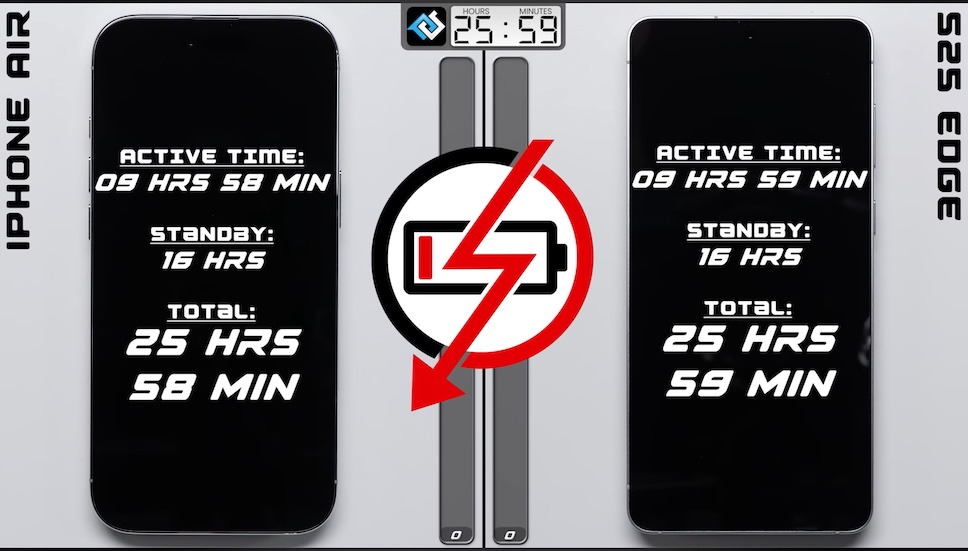 ทดสอบแบตเตอรี่ iPhone Air vs Galaxy S25 Edge รุ่นใหนให้อายุการใช้งานยาวนานกว่ากัน
