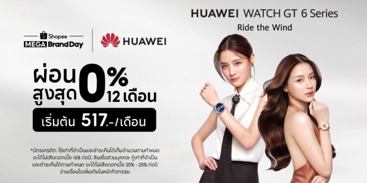 ครั้งแรก! Shopee Mega Brand Day จัดโปรโมชันสุดคุ้มสำหรับ HUAWEI WATCH GT 6 Series เป็นเจ้าเพียงจ่ายเริ่มต้นแค่ 517 บาท ต่อเดือน