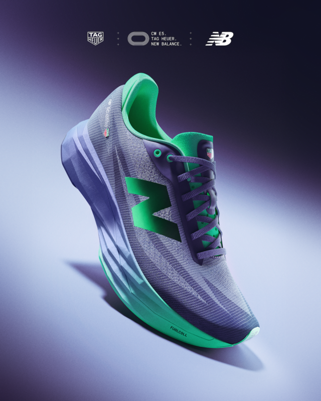 New Balance FuelCell SuperComp Elite v5 มอบความนุ่มสบายและรองรับอย่างสมดุล พร้อมส้นสูง/ปลายเท้าต่างกัน 8 มิลลิเมตร รองเท้าออกแบบด้วยอัปเปอร์ตาข่าย และลิ้นรองเท้าที่ออกแบบเพื่อความสบาย พื้นกลาง FuelCell ตอบสนองแรงก้าวได้อย่างรวดเร็ว ส่วนพื้นยางทนทาน มอบการยึดเกาะที่เหนือชั้นแต่ละเซ็ตมาพร้อมบรรจุภัณฑ์ที่ออกแบบร่วมกัน ประดับด้วยรายละเอียดพิเศษ เช่น ซ็อกไลน์เนอร์ ประดับโลโก้ TAG Heuer เติมเต็มดีไซน์ที่เชื่อมระหว่างข้อมือและเท้าผ่านภาษาภาพเดียวกัน รุ่นพิเศษนี้จะวางจำหน่ายในจำนวนจำกัดทั่วโลก โดยนาฬิกาและรองเท้าจำหน่ายแยกกัน