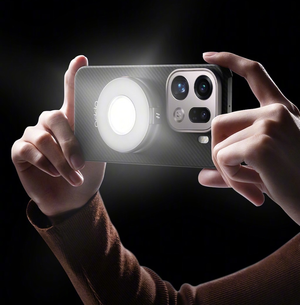 นอกจากนี้ OPPO ยังเปิดตัวอุปกรณ์เสริมสำหรับการถ่ายภาพระดับมืออาชีพรุ่นใหม่ นั่นคือ ไฟแฟลชแม่เหล็ก OPPO Hasselblad Professional Magnetic Flash Fill Halo Light ซึ่งสามารถใช้งานได้ทั้งกับด้ามจับและเคสป้องกันจาก Hasselblad Professional Imaging Kit รองรับแฟลชต่อเนื่อง 700 ครั้ง ความสว่าง 2200 ลักซ์ ที่ระยะ 0.5 เมตร ช่วงอุณหภูมิสี 3000K ถึง 9000K และไฟเติมสูงสุด 3.6 วัตต์