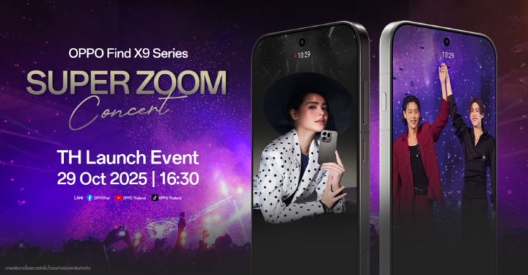 ออปโป้ ประเทศไทยเตรียมเปิดตัว OPPO Find X9 Series สมาร์ตโฟนแฟลกชิปซูมดีทุกคอนเสิร์ต พร้อมเตรียมพบกับประสบการณ์ความชัดระดับแฟลกชิปจาก OPPO กับงาน “Super Zoom Concert” คอนเสิร์ตครั้งใหญ่ที่รวมความบันเทิงและเทคโนโลยีเข้าไว้ด้วยกันอย่างลงตัว เพื่อเฉลิมฉลองการเปิดตัวสมาร์ตโฟนรุ่นใหม่ล่าสุด OPPO Find X9 Series สมาร์ตโฟนแฟลกชิปที่พร้อมยกระดับการซูมให้ชัดทุกองศา