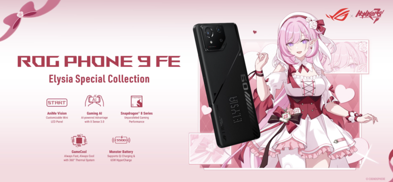 เอซุส ภายใต้แบรนด์รีพับบลิค ออฟ เกมเมอร์ส (ROG) ประกาศเปิดตัวคอลเลกชันเกมมิ่งโฟนสุดพิเศษ “ROG Phone 9 FE x Honkai Impact 3rd Elysia’s Special Collection” ที่ได้จัดทำร่วมกับค่าย HoYoverse เจ้าของเกมมือถือชื่อดังอย่าง Honkai Impact สุดยอดเกมแนว Action RPG ระดับโลก สไตล์อนิเมะต่อสู้สุดมันส์ โดยถือเป็นการเปิดตัวชุดครอสโอเวอร์สุดเอ็กซ์คลูซีฟของตัวละคร Elysia (เอลิเซีย) หนึ่งในตัวละครที่ได้รับความนิยมเป็นอย่างมากในกลุ่มผู้เล่นและชุมชนแฟนเกม Honkai Impact ที่ผสานเสน่ห์อันอ่อนช้อยของเธอ คอสตูมสีขาว-ชมพูอันเป็นเอกลักษณ์ แต่ขณะเดียวกันก็ถือเป็นตัวละครสาย DPS ที่เน้นทำดาเมจกำจัดศัตรูให้มากที่สุด ซึ่งเข้ากับคาแรกเตอร์ของ ROG Phone 9 FE ที่เป็นเกมมิ่งโฟนสุดแรง และพร้อมมอบประสบการณ์ที่ผสมผสานทั้งคุณค่าของการสะสมและจัดเต็มด้วยประสิทธิภาพที่ยอดเยี่ยมที่สุดในการเล่นเกมบนสมาร์ทโฟน ภายใต้สโลแกน “Your Game, Lit With Love เกมของคุณ สว่างไสวด้วยรัก”