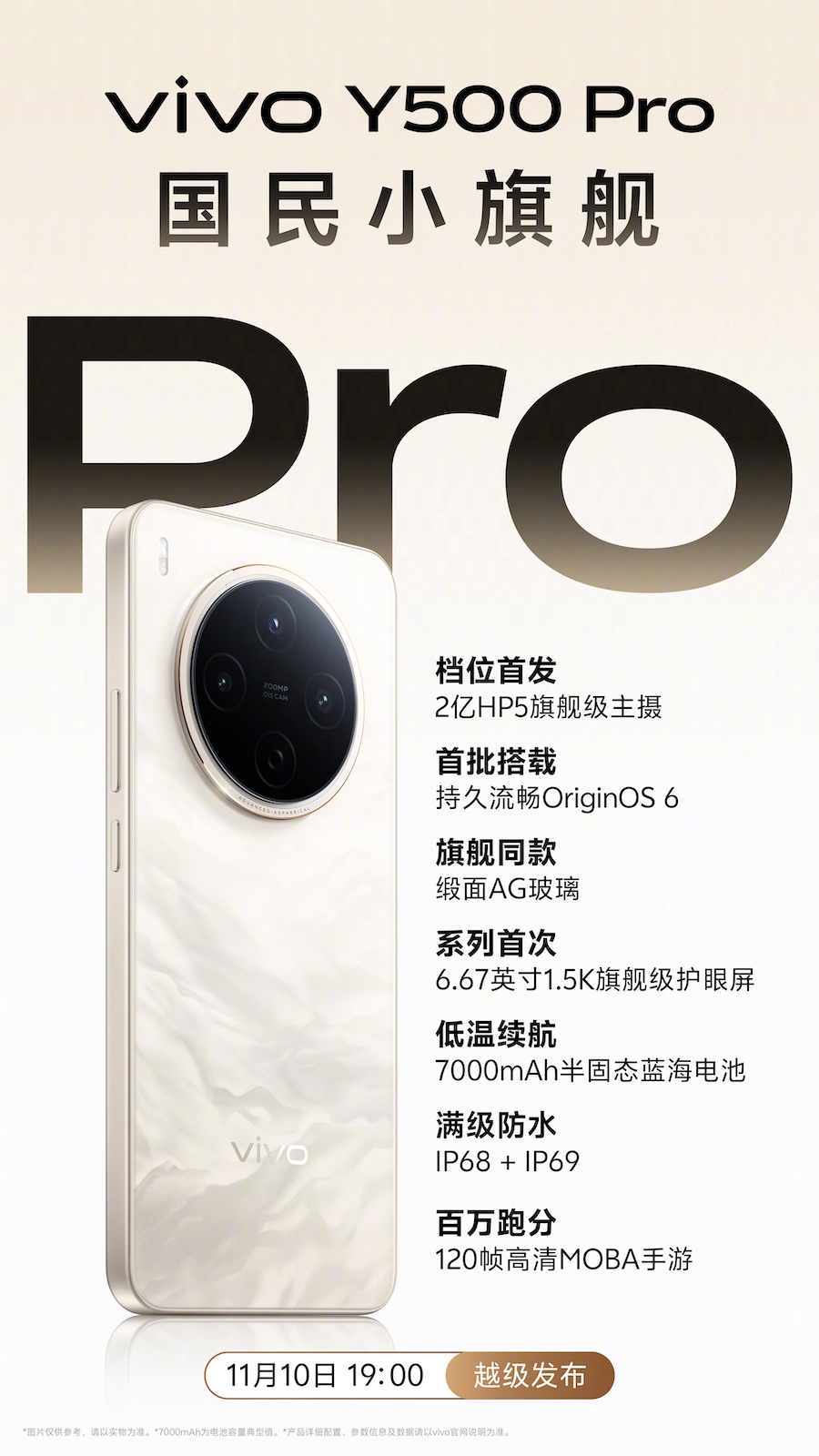 vivo แชร์รูปภาพโปสเตอร์ออกมาโปรโมทสมาร์ทโฟนรุ่นใหม่ vivo Y500 Pro พร้อมเปิดเผยสเปกออกมาบางส่วน ก่อนเปิดตัวทางการในประเทศจีน วันที่ 10 พฤศจิกายน เวลา 19.00 น. ตามเวลาท้องถิ่น