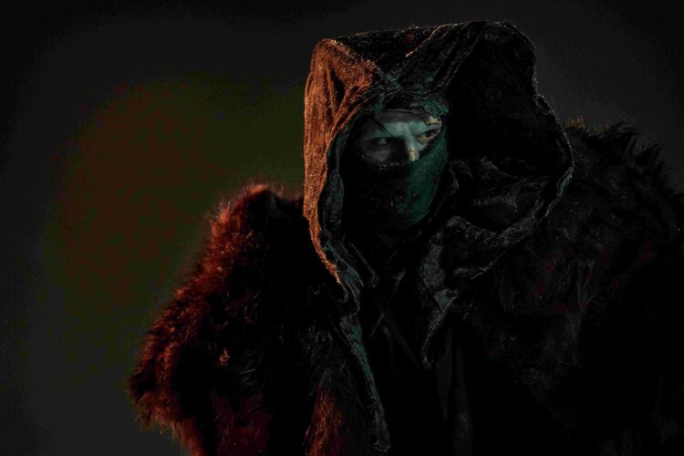 A person in a robe on a rocky surface