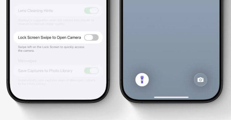 หลังจากอัปเดต iPhone เป็น iOS 26.1 ให้เข้าไปที่แอป Settings เลือก Camera แล้วเลื่อนลงจนสุด เพื่อปิดการทำงานของฟีเจอร์ Lock Screen Swipe to Open Camera