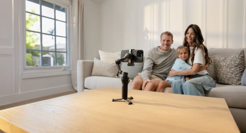 Osmo Mobile 8 ใช้ประโยชน์จากเทคโนโลยีระบบกันสั่นสามแกนรุ่นที่ 7 ของ DJI เพื่อให้ความเสถียรที่สม่ำเสมอโดยไม่ลดทอนคุณภาพของภาพ ครีเอเตอร์สามารถสลับไปมาระหว่างกล้องหน้าและกล้องหลังของโทรศัพท์ได้อย่างราบรื่นด้วยกิมบอล ทำให้เรื่องราวมีชีวิตชีวาและน่าสนใจยิ่งขึ้น การกดปุ่มทริกเกอร์ของกิมบอลสามครั้งจะหมุนกล้องหลังของโทรศัพท์ให้หันเข้าหาผู้ใช้เพื่อให้สามารถถ่ายเซลฟี่ด้วยกล้องหลังได้ ทำให้สลับภาพที่ราบรื่นระหว่างตัวแบบและทิวทัศน์ด้วยคุณภาพของภาพที่ความละเอียดสูงเท่าเดิม มาพร้อมขาตั้งกล้องในตัวและไม้ต่อในตัว ช่วยขยายมุมมองภาพเพื่อเก็บภาพเพื่อน สัตว์เลี้ยง หรือทิวทัศน์ได้มากขึ้น