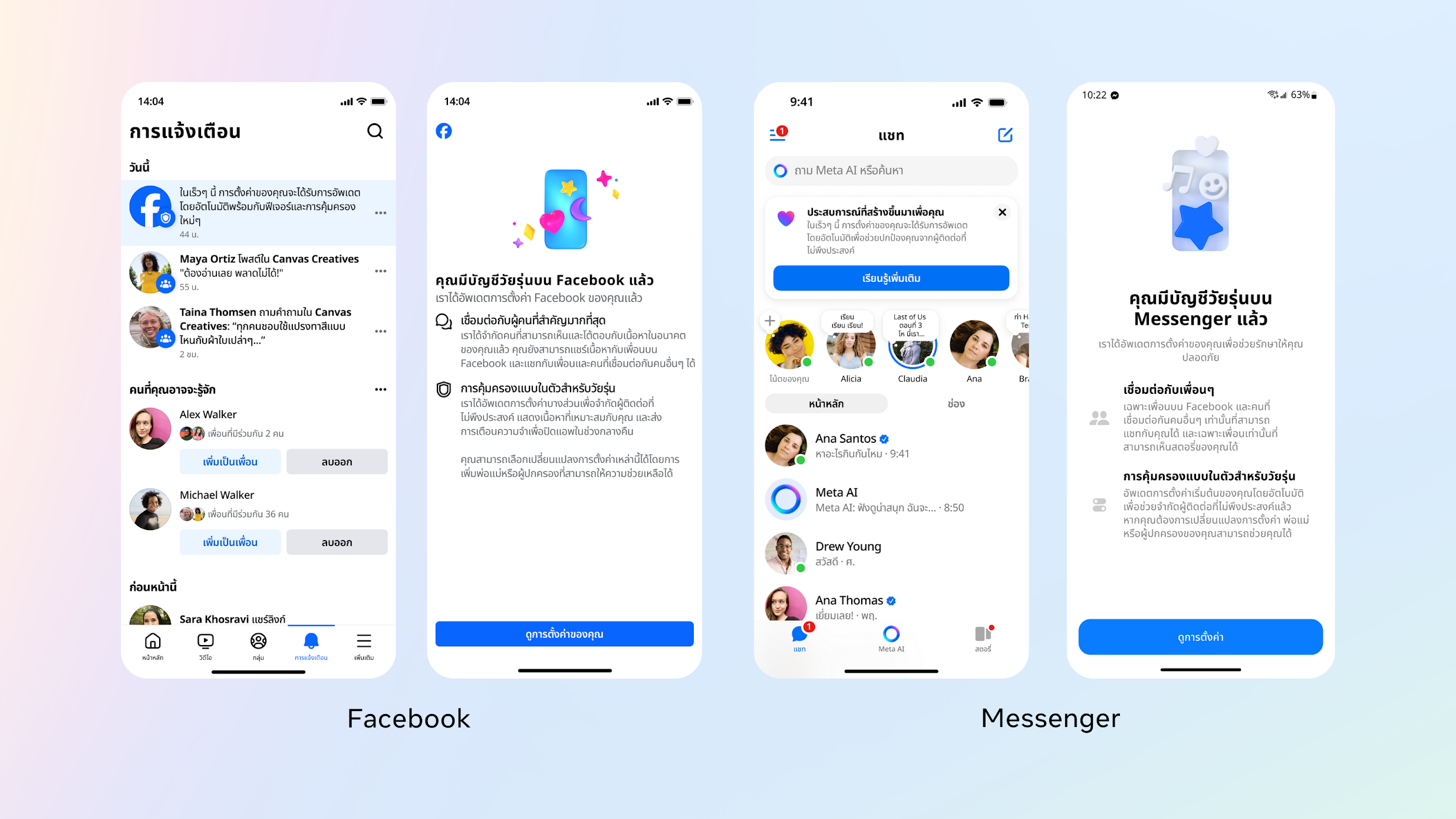 เมื่อหนึ่งปีที่ผ่านมา Meta ได้เปิดตัวบัญชีสำหรับเยาวชน (Teen Accounts) ซึ่งเป็นก้าวสำคัญในการยกระดับความปลอดภัยของผู้ใช้วัยรุ่นบนทุกแอปฯ ของ Meta ปัจจุบันบริษัทได้ปรับบัญชีของผู้ใช้วัยรุ่นหลายร้อยล้านคนทั่วโลกให้เป็นบัญชีสำหรับเยาวชน ครอบคลุมทั้ง Instagram, Facebook และ Messenger นอกจากบัญชีสำหรับเยาวชนจะใช้ได้ทั่วโลกบน Instagram แล้ว วันนี้ Meta ยังประกาศขยายการใช้งานบัญชีสำหรับเยาวชนสู่ Facebook และ Messenger ในประเทศไทย ภายในงาน Screen Smart Thailand อีกด้วย