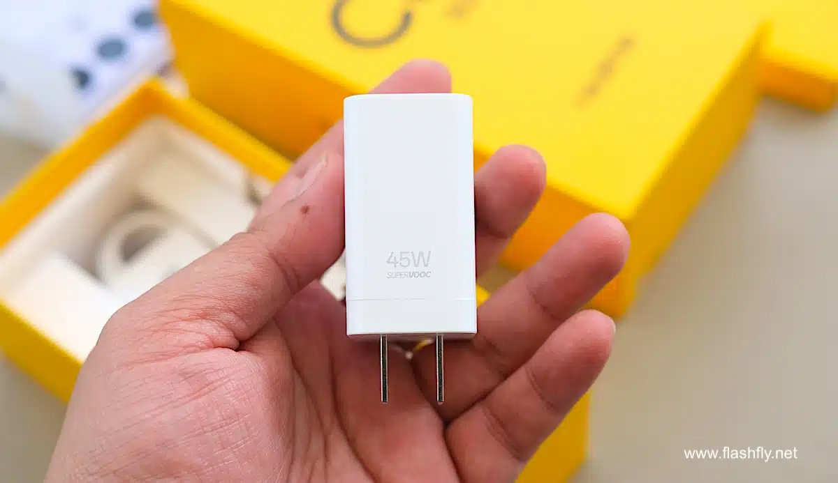 นอกจากนี้ realme C85 5G ยังรองรับเทคโนโลยีชาร์จเร็ว 45W SUPERVOOC ใช้เวลาชาร์จเพียง 5 นาที สามารถใช้งานสมาร์ตโฟนได้ยาวนาน 90 นาที เหมาะกับช่วงเวลาที่รีบเร่ง ในกล่องแถมสายชาร์จ และหัวชาร์จ 45W Power Adapter มาให้แล้ว ไม่ต้องซื้อแยกต่างหาก