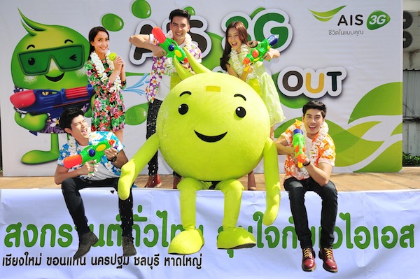 เอไอเอส นำโดย นายวิเชียร เมฆตระการ ประธานเจ้าหน้าที่บริหาร ต้อนรับเทศกาลสงกรานต์ จัดกิจกรรมคลายร้อน “สงกรานต์ทั่วไทยอุ่นใจกับเอไอเอส ปี6” เพื่อให้พี่น้องชาวไทย มีความสุขสดชื่นตลอดช่วงเทศกาล โดยเตรียมความสนุกสนานไว้มอบให้ทุกท่าน ด้วยการเนรมิตขบวนคาราวาน “AIS 3G Splash Out” ที่จะขนความสนุกเต็มคันรถ พร้อมด้วยกองทัพศิลปินชื่อดังไปมอบความสุข และของพรีเมี่ยมมากมาย อาทิ ปืนฉีดน้ำ,ซองใส่มือถือกันน้ำ และหมวกโฟมอุ่นใจ ให้ทุกท่านกันแบบใกล้ชิด ใน 5 ภาค 5 จังหวัดทั่วประเทศ