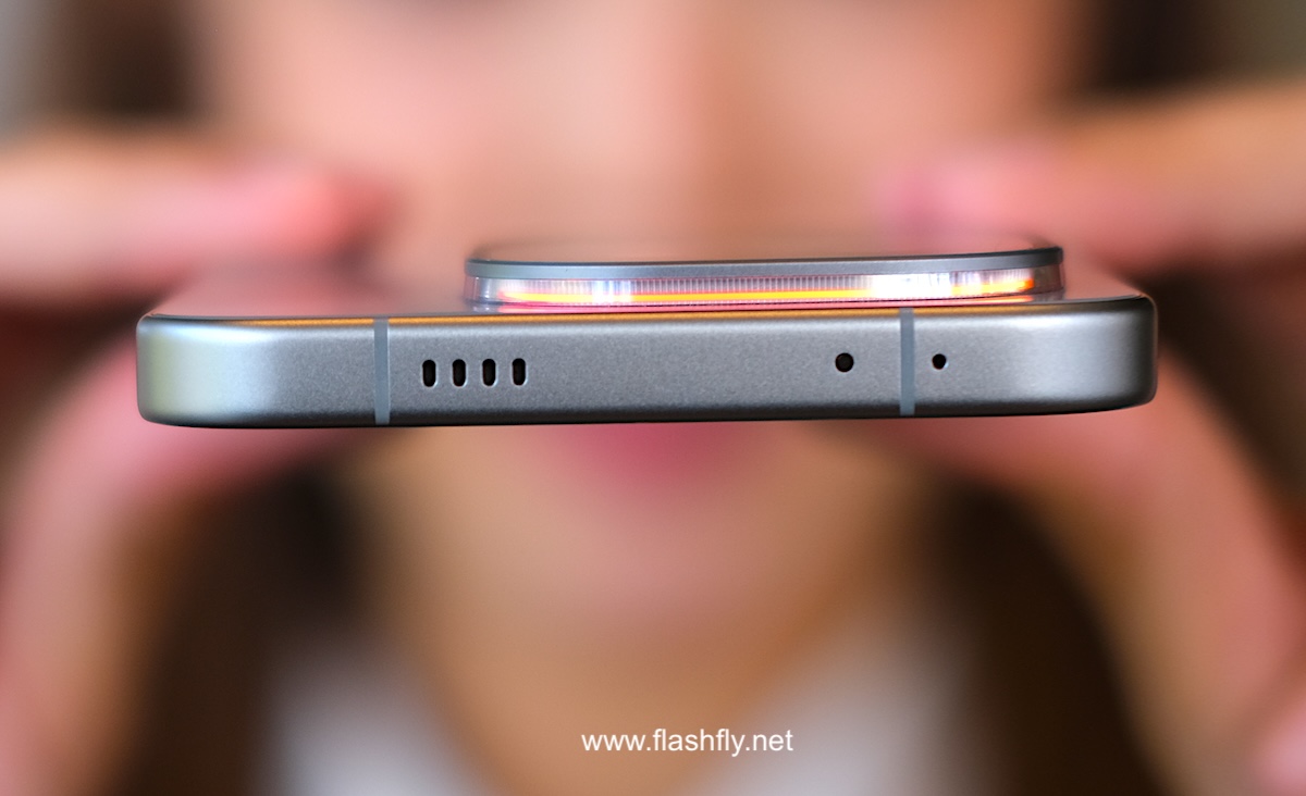 ด้านล่างประกอบด้วยลำโพงสเตอริโอ, ไมโครโฟนคู่, พอร์ตเชื่อมต่อ USB Type-C (USB 3.2) และ ถาดใส่ซิมการ์ด รองรับ 2 ซิม Dual Nano-SIM (5G + 5G Dual SIM Dual Standby)