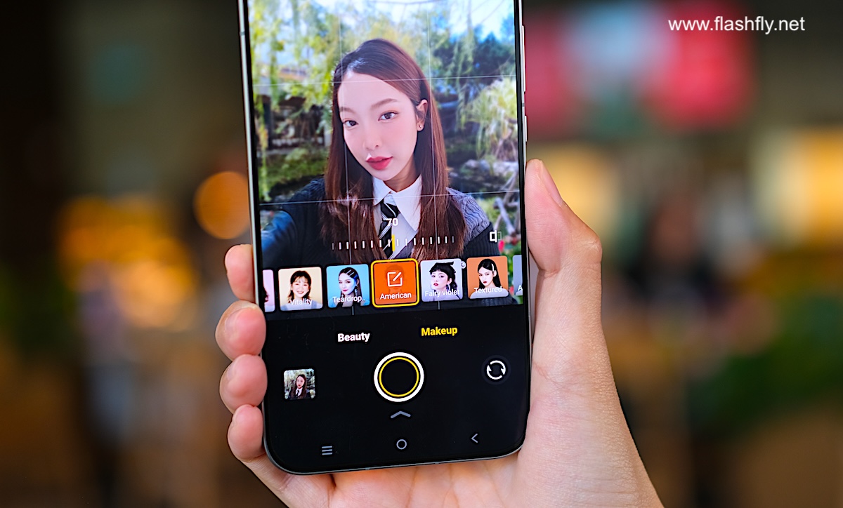 โหมด Portrait ของกล้องหน้าสามารถปรับค่า F เพื่อละลายฉากหลังได้ มีฟีเจอร์ Beauty สำหรับปรับความงามบนใบหน้าอย่างละเอียดครอบคลุมทุกโซนบนใบหน้า รวมถึง Makeup เสริมความงามได้ตามเทมเพลตที่ต้องการ รวมถึงฟิลเตอร์ Basic styles และ Personalized Styles แบบเดียวกับกล้องหลัง