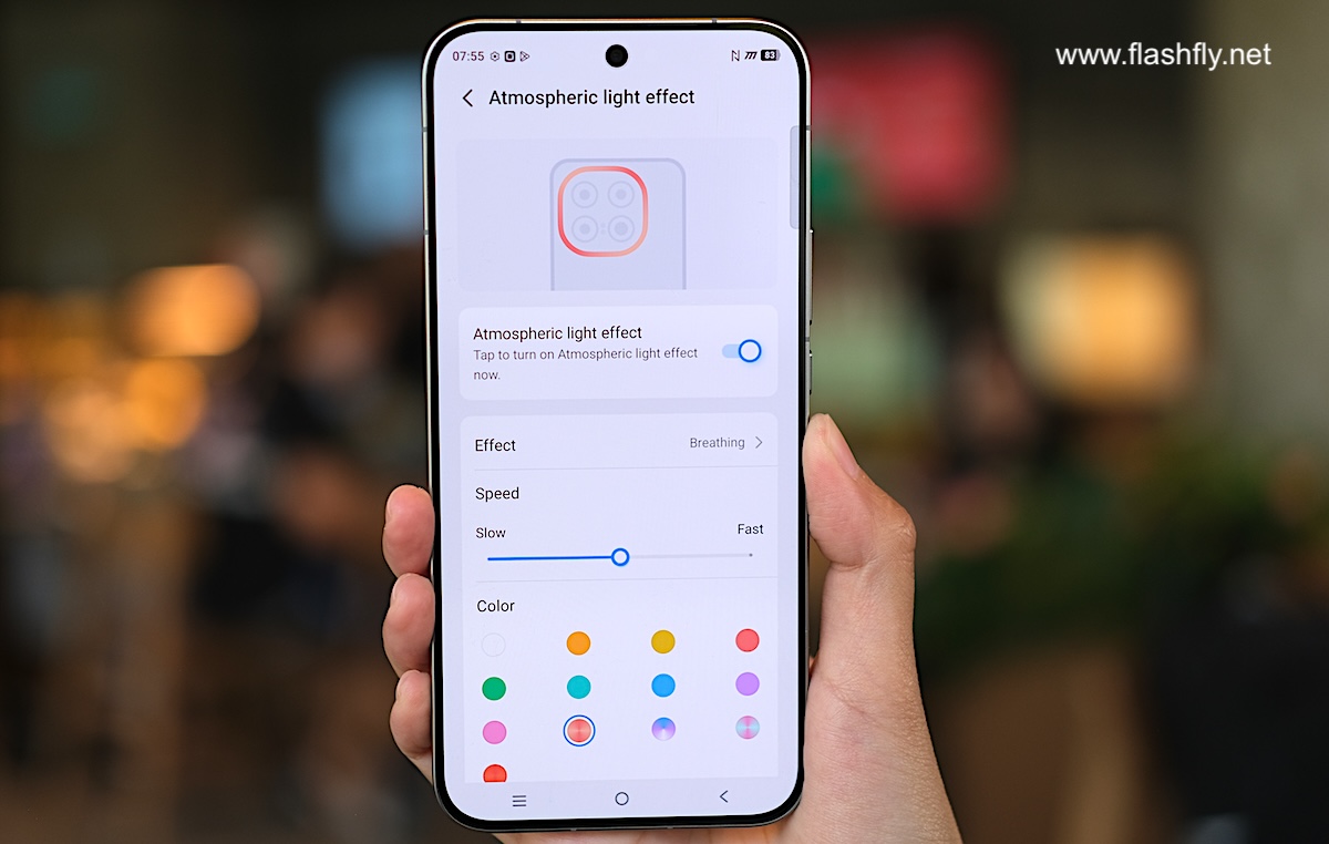 เมื่อโดนแสงบริเวณลายด้านหลังตัวเครื่องบางส่วนจะเปลี่ยนเป็นเหมือนเปลวเพลิงทรงพลังที่ทำออกมาได้ดีมากๆ