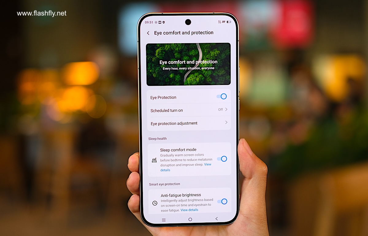 จอแสดงผลของ iQOO 15 ยังผ่านการรับรองมาตรฐาน Low Blue Light และ Flicker Free จาก TÜV Rheinland ช่วยป้องกันดวงตาจากแสงสีฟ้า โดยเฉพาะการจ้องหน้าจอในที่แสงน้อยเป็นเวลานาน สามารถลดอัตราการกะพริบและลดแสงของหน้าจอ ทำให้สายตาไม่เมื่อยล้าจากการใช้งานอย่างต่อเนื่อง อีกทั้งยังรองรับ Circularly Polarized Light ช่วยลดแสงสะท้อนและแสงจ้าโดยการกรองแสงสะท้อนที่ไม่ต้องการออกไป