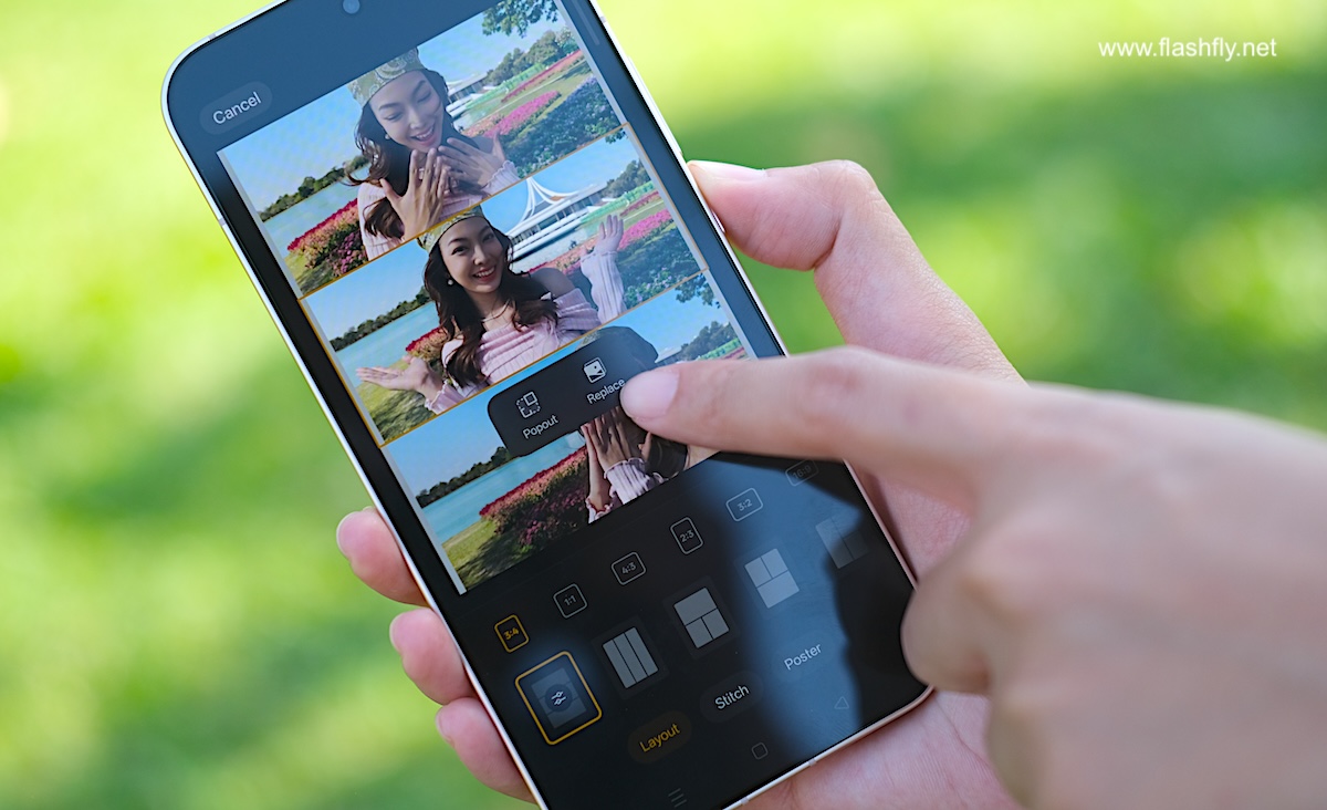 ฟีเจอร์ Popout รองรับทั้งภาพนิ่งและภาพเคลื่อนไหวแบบ AI Motion Photo สามารถเลือกรูปภาพได้สูงสุดถึง 9 รูป และรองรับภาพเคลื่อนไหว Motion Photo ความยาวรวมกันได้ประมาณ 10 วินาที