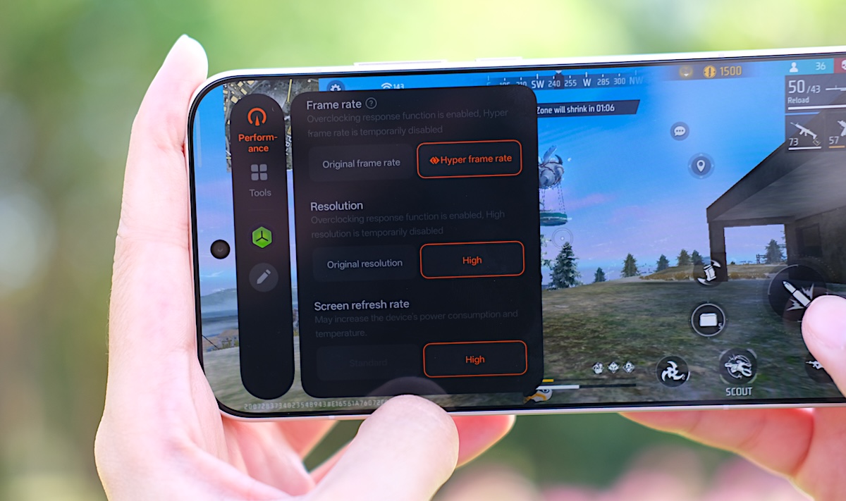 OPPO Reno15 Pro Max 5G รวมถึง OPPO Reno15 Pro 5G ได้รับปรับปรุงประสบการณ์การเล่นเกมด้วยเทคโนโลยี AI HyperBoost 2.0 เอนจินพิเศษที่พัฒนาขึ้นมา เพื่อช่วยปรับแต่งประสิทธิภาพการเล่นเกม โดยใช้อัลกอริทึม AI ขั้นสูง ทำให้เฟรมเรตมีความเสถียร พร้อมควบคุมอุณหภูมิและจัดสรรทรัพยากรอย่างชาญฉลาด ทำให้การเล่นเกมลื่นไหล และเสถียรระดับ 120 เฟรมต่อวินาที สำหรับเกมยอดนิยมอย่าง Free Fire, Mobile Legends: Bang Bang และ PUBG โดยทำงานผ่าน 2 ฟีเจอร์หลัก ได้แก่ AI Adaptive Temperature Control และ AI Adaptive Frame Booster