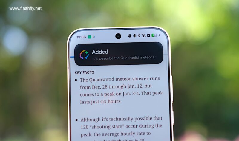 นอกจากนี้ AI Mind Space ยังมีความฉลาดในการทำความเข้าใจเนื้อหาของผู้ใช้งาน ตัวอย่างเช่น เมื่อส่องกล้องไปที่โปสเตอร์คอนเสิร์ต ระบบจะดึงข้อมูลสำคัญอย่างวันที่และเวลาออกมาให้โดยอัตโนมัติ พร้อมแจ้งเตือนให้บันทึกลงในปฏิทินได้ทันที โดยไม่จำเป็นต้องถ่ายภาพเก็บไว้