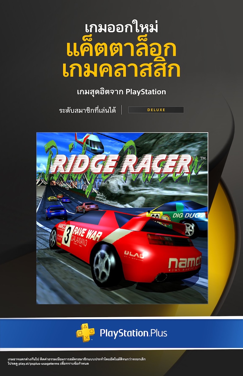 PlayStation เตรียมเพิ่มเกมใหม่ป้อนลงแค็ตตาล็อกสำหรับสมาชิก PlayStation Plus ในวันที่ 20 มกราคมนี้ รวมถึงเกมแข่งรถระดับตำนาน Ridge Racer (PS1) จากแค็ตตาล็อกเกมคลาสสิก