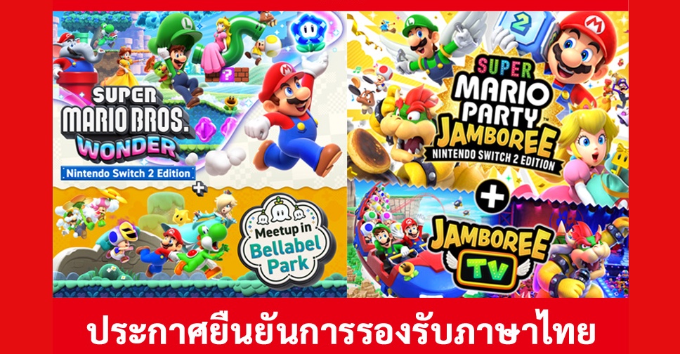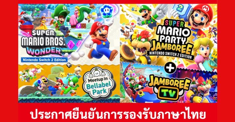 หลังจากเพิ่มภาษาไทยให้กับเกม Donkey Kong Bananza เมื่อปลายปีที่ผ่านมา ล่าสุดเกม Super Mario Bros. Wonder และ Super Mario Party Jamboree สำหรับ Switch 2 ก็จะรองรับภาษาไทยเช่นกัน