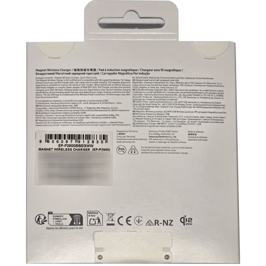 ที่ชาร์จไร้สายรุ่นใหม่จาก Samsung มีชื่อว่า Magnetic Wireless Charger หมายเลขรุ่น EP-P2900BBEGWW ระบุว่ารองรับมาตรฐานการชาร์จไร้สาย Qi2 จ่ายไฟได้สูงสุด 25W