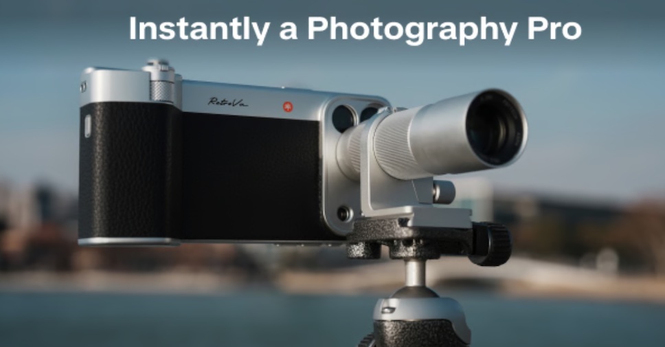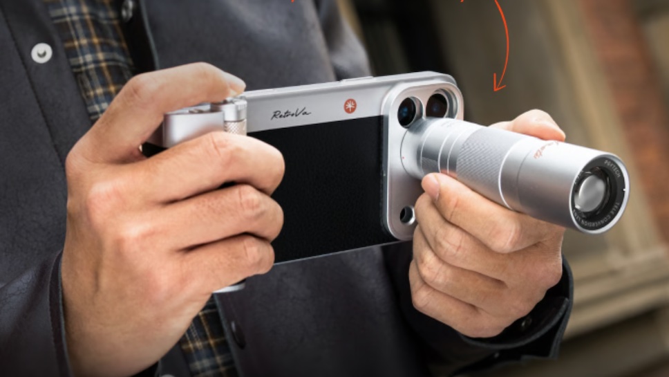 เลนส์ซูม 10 เท่า สำหรับ iPhone จาก PGYTech มีชื่อว่า RetroVa Vintage Imaging Kit ในชุดประกอบด้วย เคส, กริป, วงแหวนอะแดปเตอร์เลนส์, เลนส์เทเลโฟโต้เสริม 2.35 เท่า, สายคล้อง และ ตัวยึดขาตั้งกล้อง