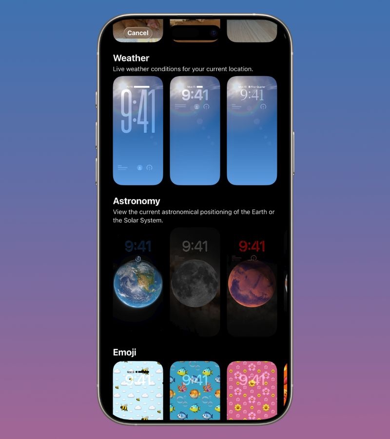 iOS 26.3 ยังมีวอลเปเปอร์สภาพอากาศให้เลือก 3 แบบ ตั้งค่าได้โดยการแตะค้างที่หน้าจอล็อก แล้วแตะเครื่องหมายบวกที่มุมล่างขวาของหน้าจอ