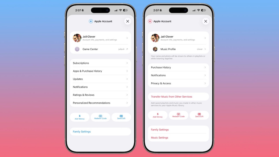 Apple Account ได้รับการออกแบบใหม่ เพื่อใช้งานแทนที่ฟีเจอร์ Profile แบบเดิม โดยรวมบัญชีของ Apple ไว้ในที่เดียว ไม่ว่าจะเป็น App Store, ‌Apple Music‌ และบัญชีของแอปอื่นๆ