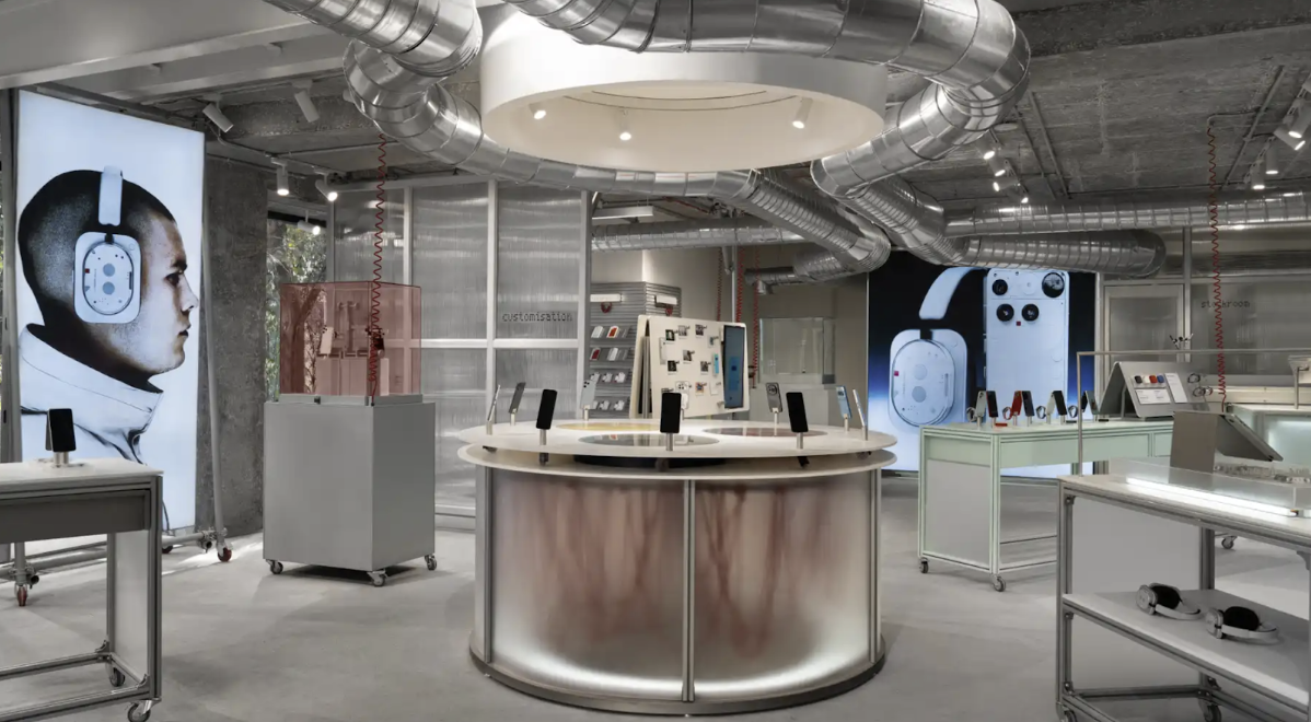 พื้นที่ขนาด 5,032 ตารางฟุต บน 2 ชั้น ได้แรงบันดาลใจจากไลน์การผลิตและเวิร์กช็อปยุค 70s เปลี่ยนเอกลักษณ์ดีไซน์ของ Nothing ให้กลายเป็นพื้นที่ที่มีชีวิตและมีส่วนร่วมจริง ๆ ใจกลางของร้านคือ “การแสดงตัวตน” ที่นี่คือที่เดียวในโลกที่ลูกค้าสามารถปรับแต่งสินค้า Nothing ให้เป็นสไตล์ของตัวเองได้ พร้อมสตูดิโอสำหรับครีเอเตอร์ ใช้ถ่าย unboxing หรือทำคอนเทนต์แบบลงมือจริง
