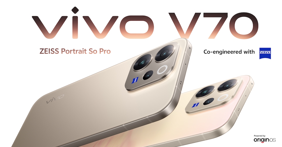 สมาร์ทโฟน vivo V70 เปิดตัวทางการแล้ว ชูจุดเด่นที่ระบบกล้องคุณภาพสูงจาก ZEISS ทั้งกล้องหลังและกล้องเซลฟี่ ดีไซน์หรูหราพรีเมียม ได้รับมาตรฐานป้องกันน้ำและฝุ่นระดับ IP68 และ IP69