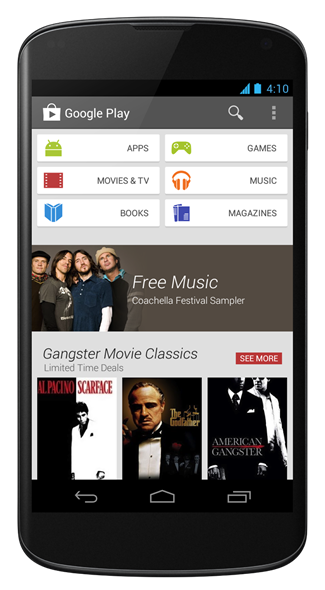 Google ได้เปิดตัว Google Play เวอร์ชั่น 4.0 ล่าสุดสำหรับ Android และ Tablet Android ซึ่งได้มีการเปลี่ยนหน้าตา UI ใหม่หมดมีการจัดหมวดหมู่ใหม่ แสดงภาพได้ใหญ่ขึ้น ซึ่งทาง Google ก็ได้ทยอยปล่อยอัพเดทแล้ววันนี้ รองรับ Android เวอร์ชั่น 2.2 ขึ้นไป ซึ่งกว่าจะอัพเดทได้ครบทุกรุ่นต้องใช้เวลาหลายสัปดาห์ทีเดียว ถ้าใครไม่อยากรอนานสามารถดาวน์โหลดได้ที่ด้านล่าง