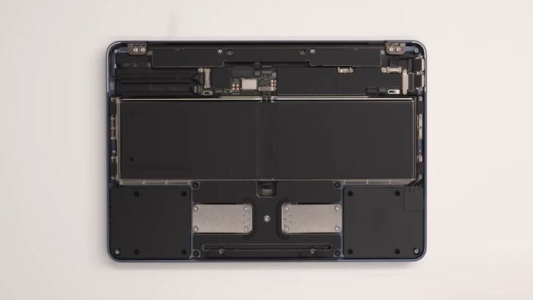 นอกจากนำเสนอรีวิว Dave2D ยังลงมือถอดฝาด้านล่าง MacBook Neo ออก เพื่อดูส่วนประกอบภายใน แต่ยังไม่ถึงขั้นรื้อชิ้นส่วนออกมาอย่างที่เคยเห็น iFixit ชอบทำ