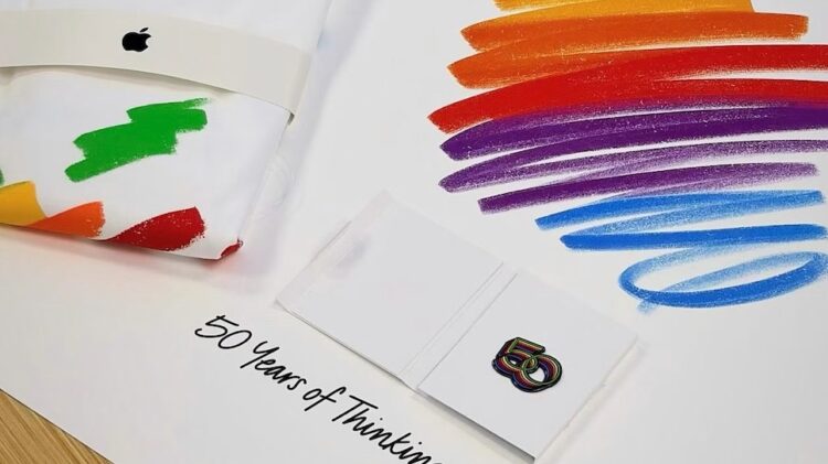 ในโอกาสครบรอบ 50 ปี พนักงานของ Apple ต่างด็ได้รับเสื้อยืดที่ระลึก เข็มกลัด และโปสเตอร์รุ่นลิมิเต็ดอิดิชั่น ซึ่งทั้งหมดนี้มีโลโก้ Apple สีรุ้งสไตล์ลายเส้นขีดเขียนที่ Apple ใช้ในงานศิลปะครบรอบ 50 ปีของบริษัท โดยสินค้าส่วนใหญ่ทำด้วยมือ และพนักงานของ Apple สามารถมารับได้ตั้งแต่วันนี้ จนถึงวันที่ 30 เมษายน 2026