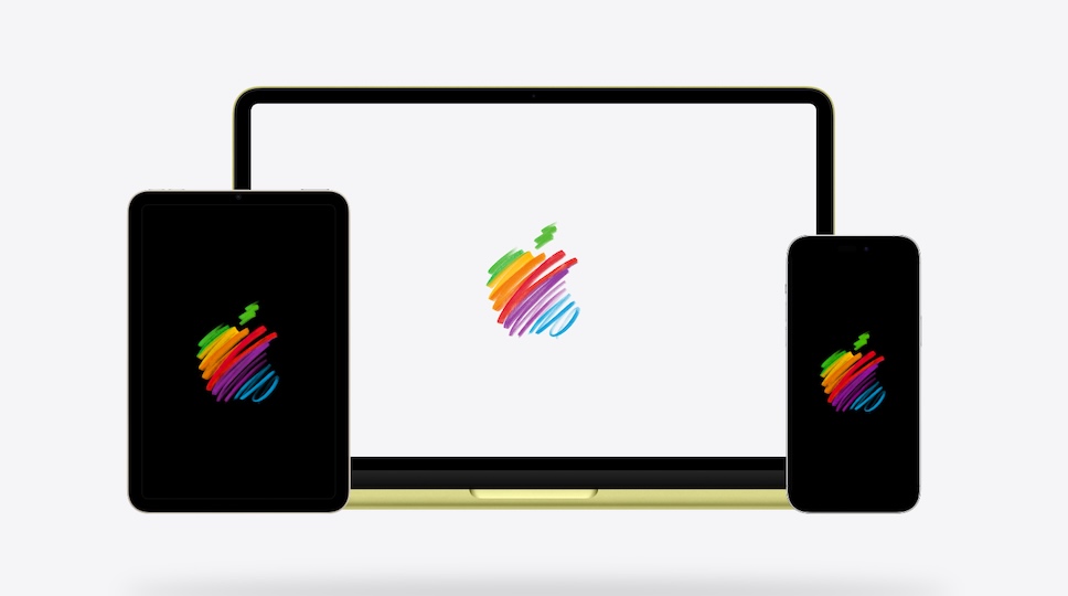 Apple ออกแบบโลโก้ใหม่ เพื่อใช้ในโอกาสครบรอบ 50 ปีของบริษัท ซึ่งนักออกแบบกราฟิก Basic Apple Guy ได้นำมาทำใหม่เพื่อใช้เป็นวอลเปเปอร์สำหรับ iPhone, iPad และ Mac