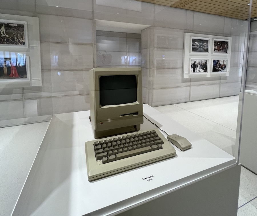 นอกจากนี้ ยังมีการฉายวิดีโอแสดงประวัติศาสตร์ของ Apple บนจอแสดงผลขนาดใหญ่ เริ่มต้นด้วยการเปิดอาคาร Steve Jobs Theater ตามด้วยโฆษณา Super Bowl ปี 1984 และโฆษณา Macintosh ยุคแรกๆ รวมถึงโปรโมชั่น Microsoft Office บน Mac โดยมีการฉายวนซ้ำไปเรื่อยๆ เพื่อไม่ให้นิทรรศการดูเงียบเหงาเกินไป