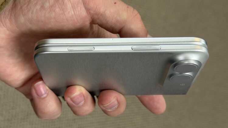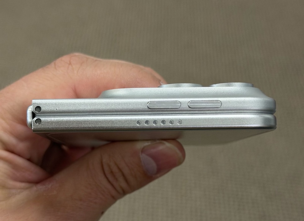 มุมมองด้านข้างของ iPhone Ultra เครื่องดัมมี่ ยังแสดงให้เห็นปุ่มควบคุม 2 ตำแหน่ง ซึ่งคาดว่าปุ่มบนเป็นปุ่มเปิด/ปิด ที่รวม Touch ID อยู่ในปุ่มด้วย และปุ่มด้านล่างสำหรับควบคุมกล้อง ส่วนปุ่มปรับระดับเสียงจะอยู่ด้านบนเหมือน iPad mini