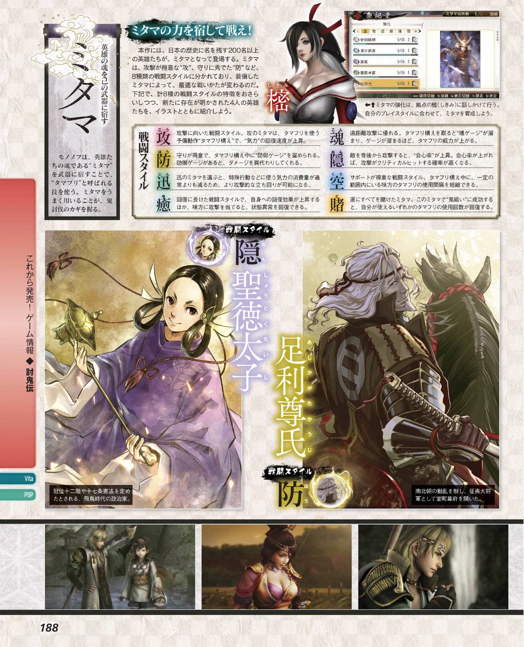 ภาพสแกนล่าสุดของเกม Toukiden จากนิตยสารเกมของญี่ปุ่น เกมแนว Hunting ของค่าย Koei Tecmo ที่เปลี่ยนรูปแบบจากล่ามอนสเตอร์ มาเป็นล่าพวกยักษ์และปีศาจแทน จากภาพสแกนชุดนี้เผยให้เห็นบอสตัวใหม่ปีศาจนกสี่ปีก Hinomagatori ที่สามารถพ่นไฟออกจากปากได้ และปีศาจขนาดเล็กอย่าง Onmoraki (รูปร่างคล้ายค้างคาว) กับ Onibi (ปีศาจที่มีแต่หัวไฟลุกท่วมตลอดเวลา) รวมไปถึงภาพบรรยากาศต่างๆภายในเกม