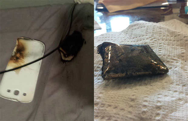 เป็นเรื่องอีกแล้วเมื่อผู้ใช้งาน Galaxy S III โพสภาพเล่าเหตุการณ์สุดระทึกเมื่อ Galaxy S III เกิดระเบิดขึ้นระหว่างที่ชาร์จแบตเตอรี่ในขณะที่นอนหลับอยู่