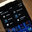 โดยที่หน้า Home เมื่อตวัดนิ้วลงมาจากทางด้านบนจะสามารถเข้าสู่การปรับค่าต่างๆได้ทั้ง Settings ,การปิดเปิดการเอียงหน้าจอ,Bluetooth ,Wifi ,นาฬิกาปลุก และการปรับแต่งการแจ้งเตือน